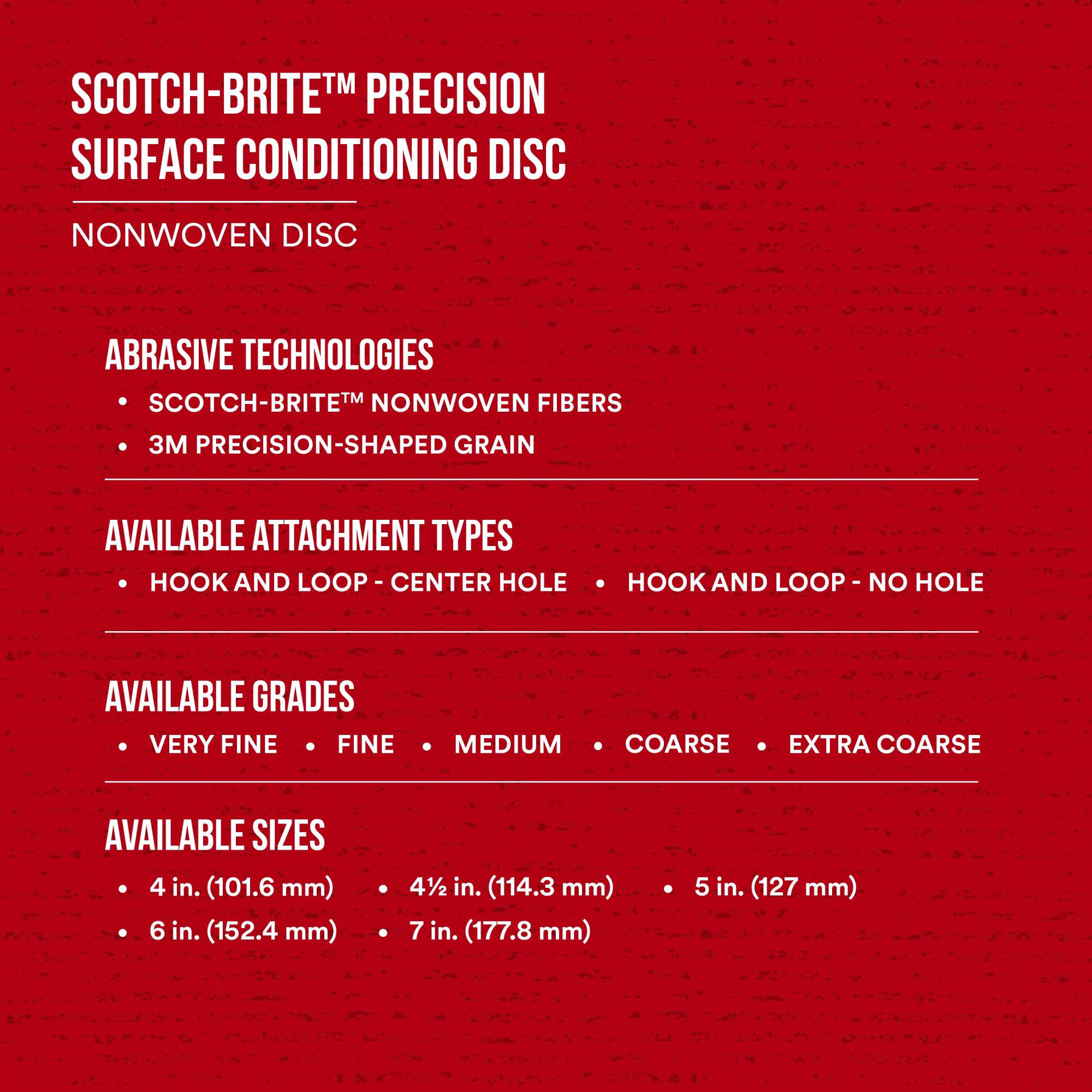 • TWO INNOVATIVE TECHNOLOGIES IN ONE DISC: Scotch-Brite™ nonwoven fibers combined with 3M Precision-Shaped Grain deliver improved performance over traditional surface conditioning discs