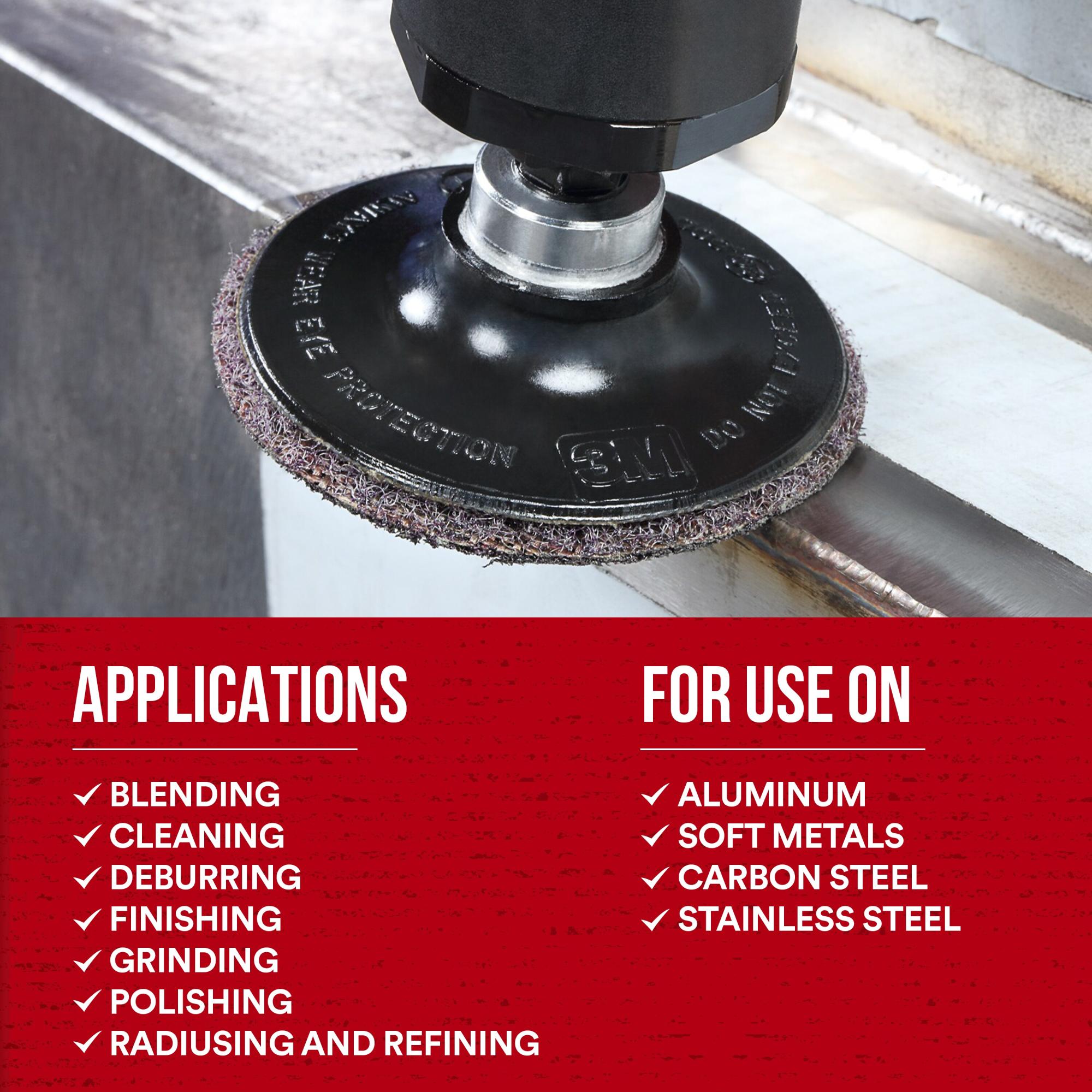 • TWO INNOVATIVE TECHNOLOGIES IN ONE DISC: Scotch-Brite™ nonwoven fibers combined with 3M Precision-Shaped Grain deliver improved performance over traditional surface conditioning discs