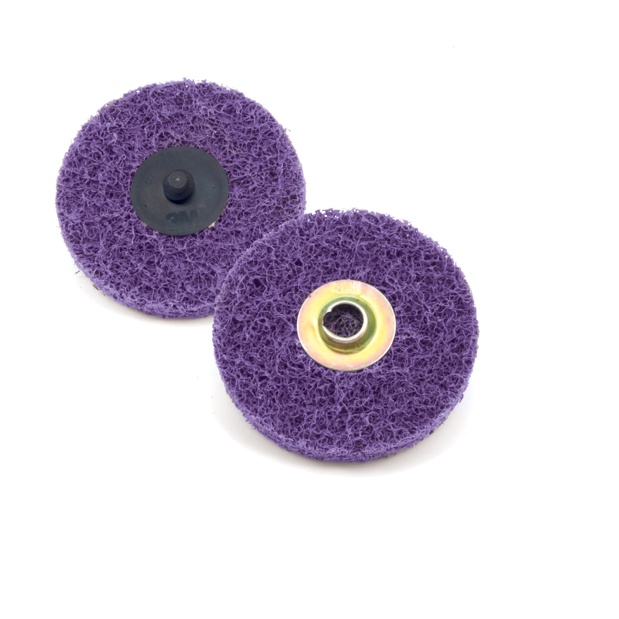 For added productivity, 3M™ Roloc™ products offer easy changeouts between steps on portable tools. 3M™ Roloc™ TR quick change discs are smaller discs that have a plastic threaded button or screw designed to easily and quickly screw onto a 3M™ Roloc™ TR Disc Pad (sold separately) so that operators can conveniently change discs with a simple twist-off, twist-on motion. 3M Roloc discs are also available with a TSM metal button. The 3M Roloc system provides a secure attachment even for heavy-duty applications, and the variety of available 3M Roloc discs allows swapping from one application to the next in seconds.