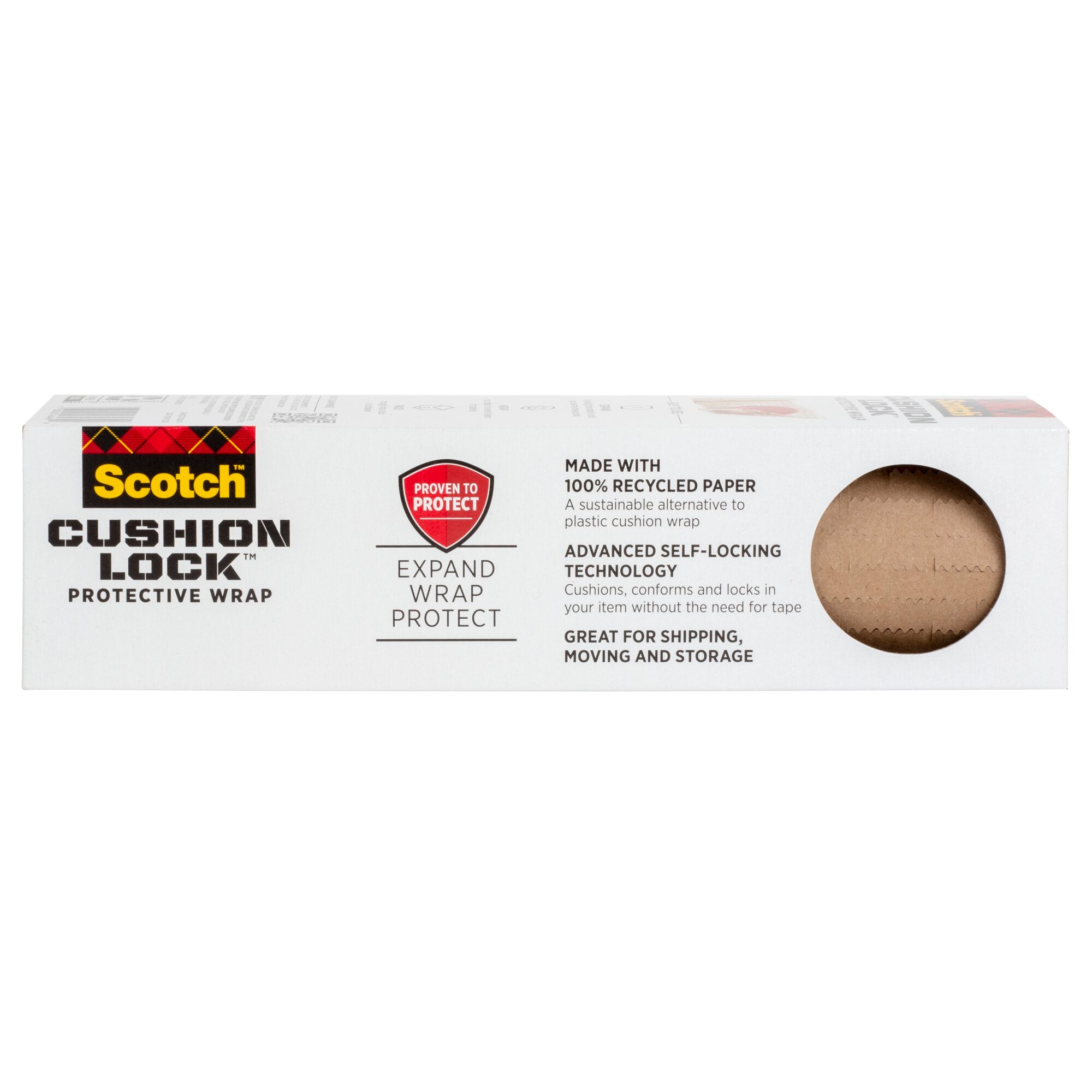 A sustainable, expanding paper wrap that cushions, immobilizes and conforms to your item for_x000D_ superior protection during shipping, moving or storageNow you can package your items with the confidence of protection, without the guilt of plastic. Scotch™ Cushion Lock™ is an expanding paper wrap made with 100% recycled paper that delivers proven protection, using up to 60% less vs. plastic bubble* to fill a box. How? One 30-ft roll expands to do the work of 75-ft of plastic bubble* - just stretch, wrap in 360°, and pack in nested protection. With its proprietary self-locking design, you don’t need tape to secure or scissors to cut. Once delivered, just recycle with ease.  ​* to fill a cubic foot box vs. standard 3/16" plastic bubble.