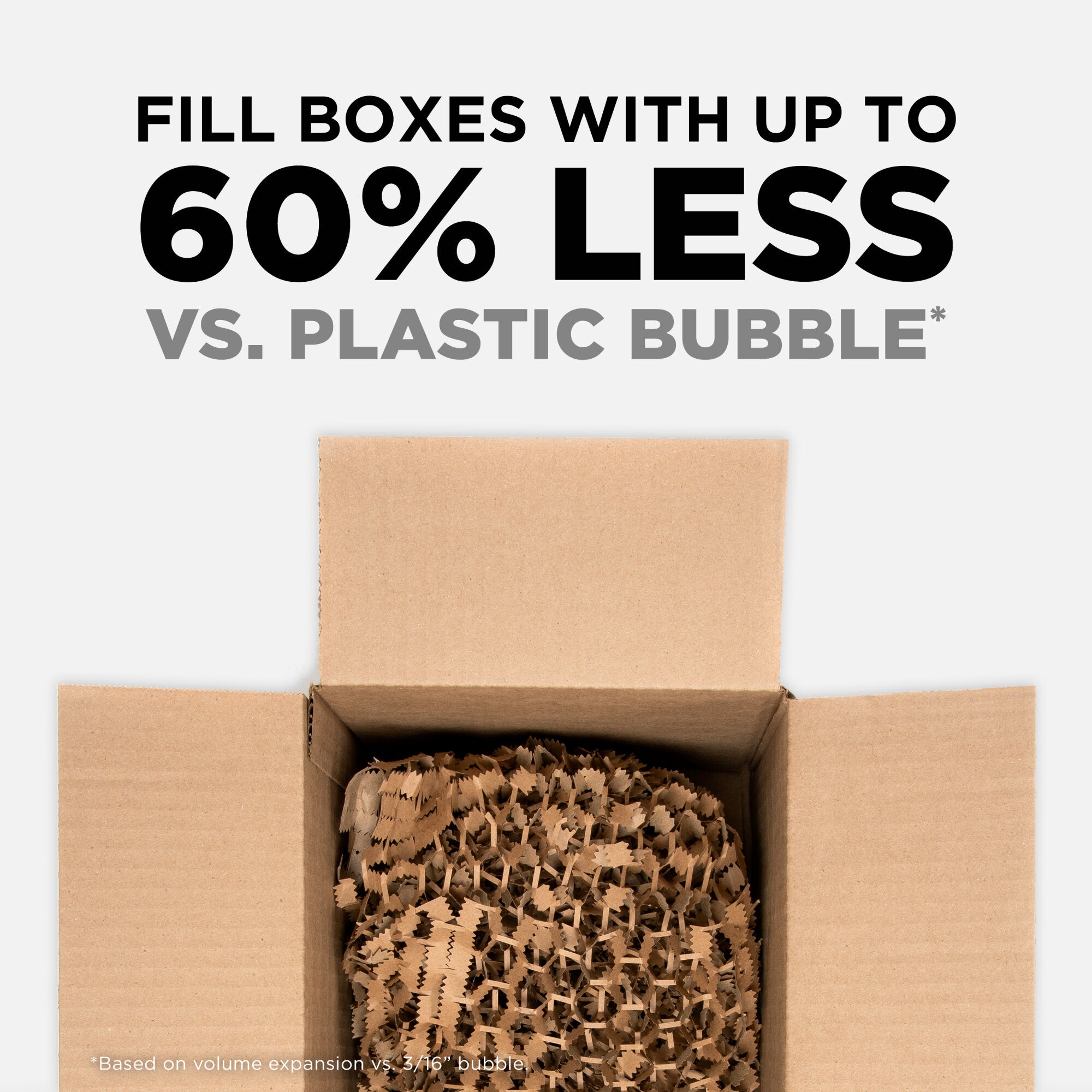 • MORE PACKING POWER - One 30-foot roll starts flat and expands to do the work of 75-ft of standard plastic bubble and 1,000 feet expands to replace 2,500-feet of standard plastic bubble