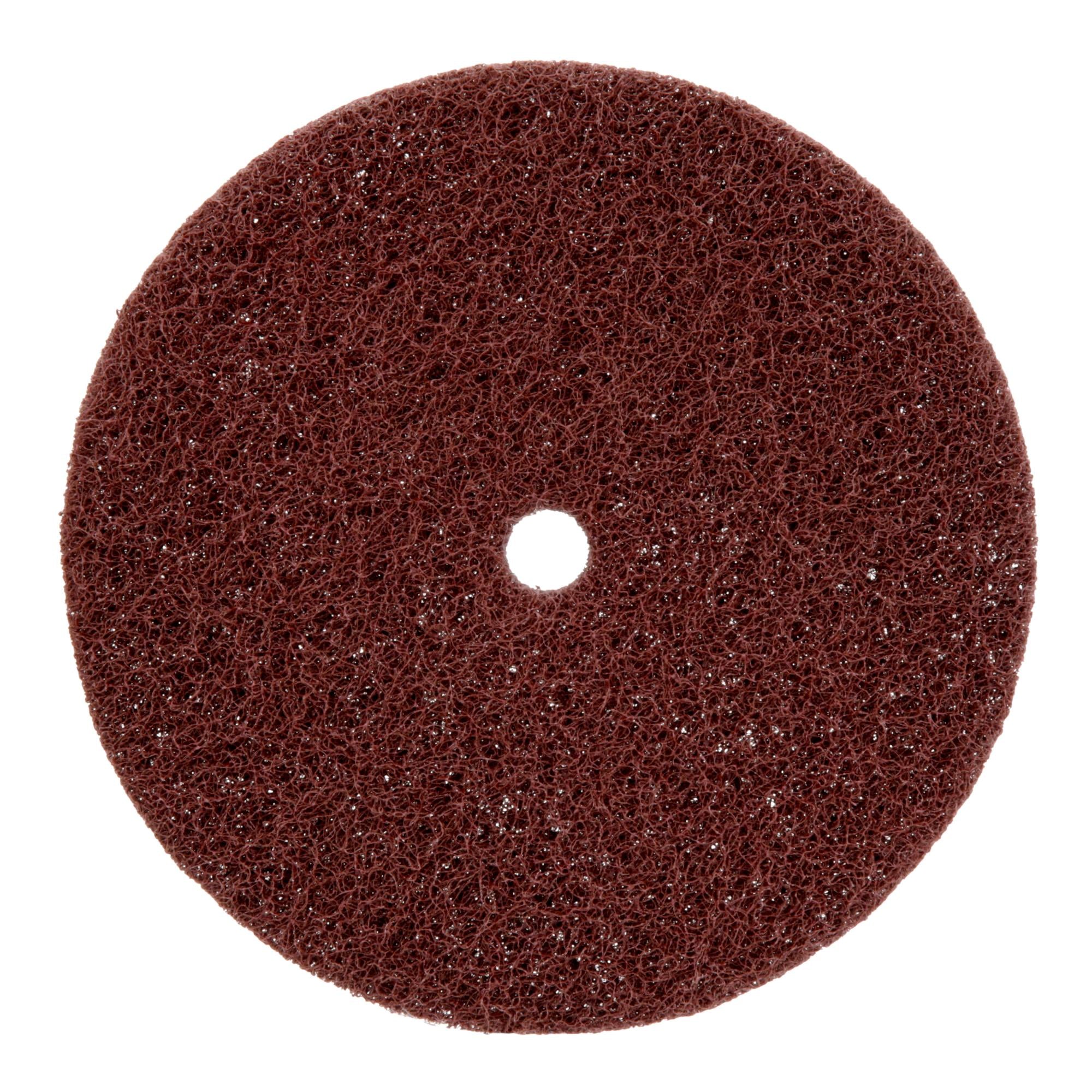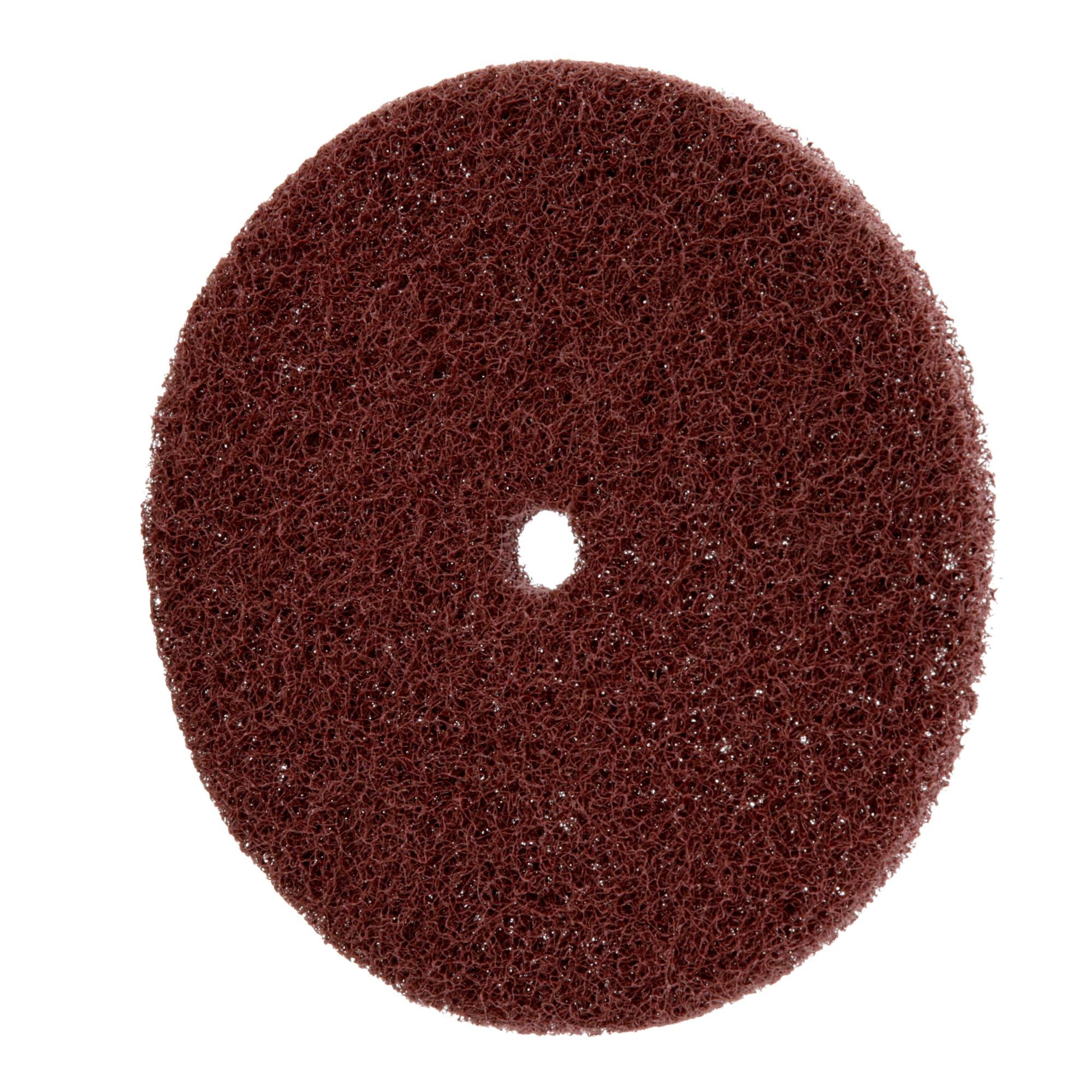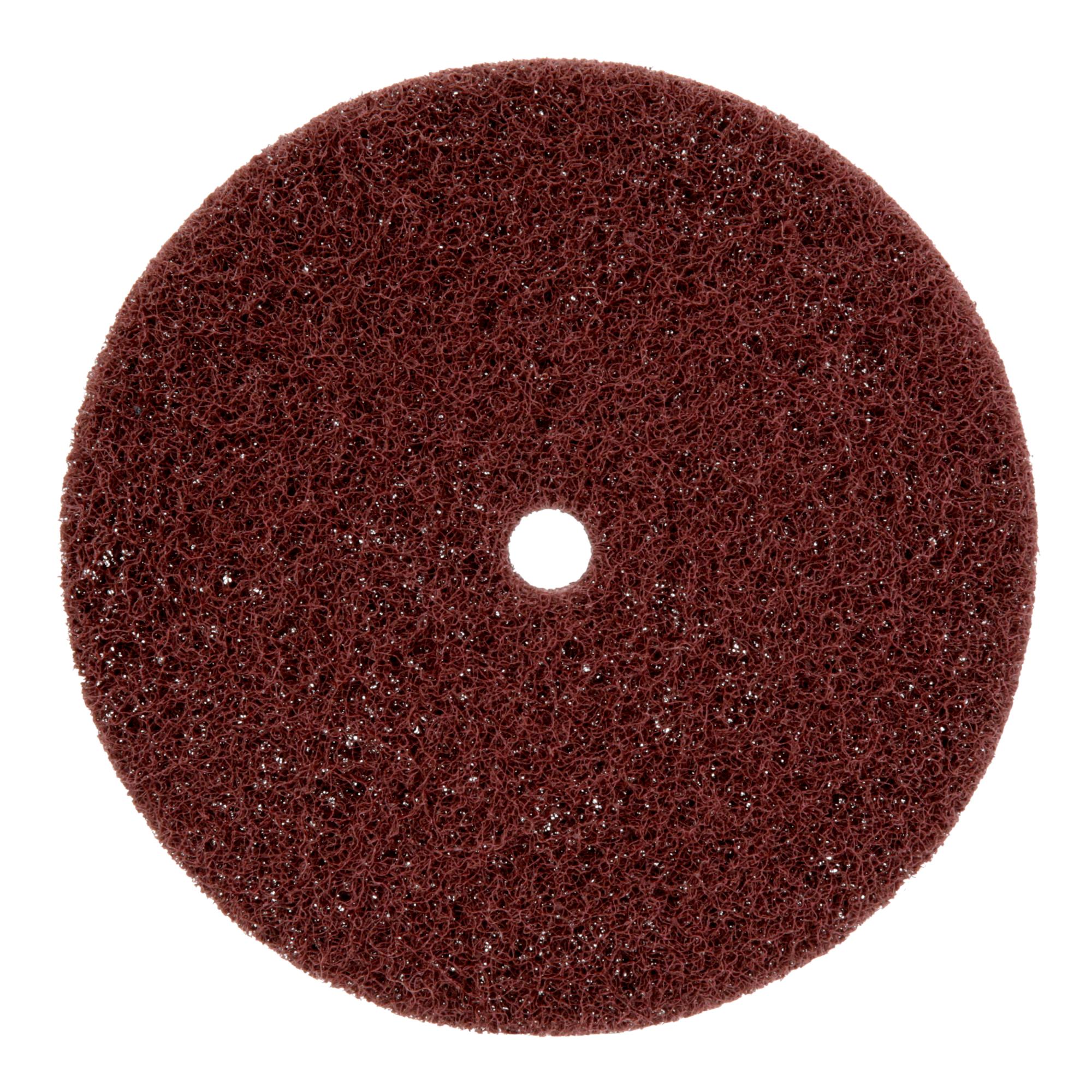 Our Standard Abrasives™ Buff and Blend GP Disc is a great multi-purpose product for general-duty industrial applications. One of five Buff and Blend materials, the maroon GP material is moderately aggressive. Use it to remove light oxidation, blend minor surface imperfections, clean surfaces prior to coatings, remove small burrs, and perform basic equipment cleanup. A flexible open web conforms to workpiece contours, radii and internal diameters. Its non-woven construction makes the disc spongy and responsive. If desired, discs may be ganged on a shaft to form a wheel and accommodate larger workpieces. When the job requires a tougher disc for higher-pressure applications, we recommend using a Standard Abrasives™ Buff and Blend HP or HS Disc. Quick change discs are also available.
