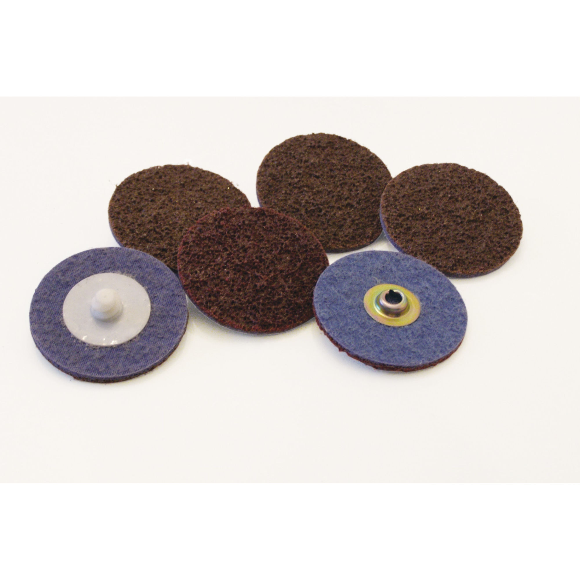 The fibers that make up this disc are overlaid with aluminum oxide abrasive. Aluminum oxide discs are a good match for operators who desire an all-purpose versatility and economy. The mineral cuts fast while blending and deburring and is a good choice for applications on ferrous metals and composites. XD discs feature a premium grain with higher fracture strength, meaning the mineral will fragment and renew more readily. They are available in coarse (brown) or medium (maroon) grits.