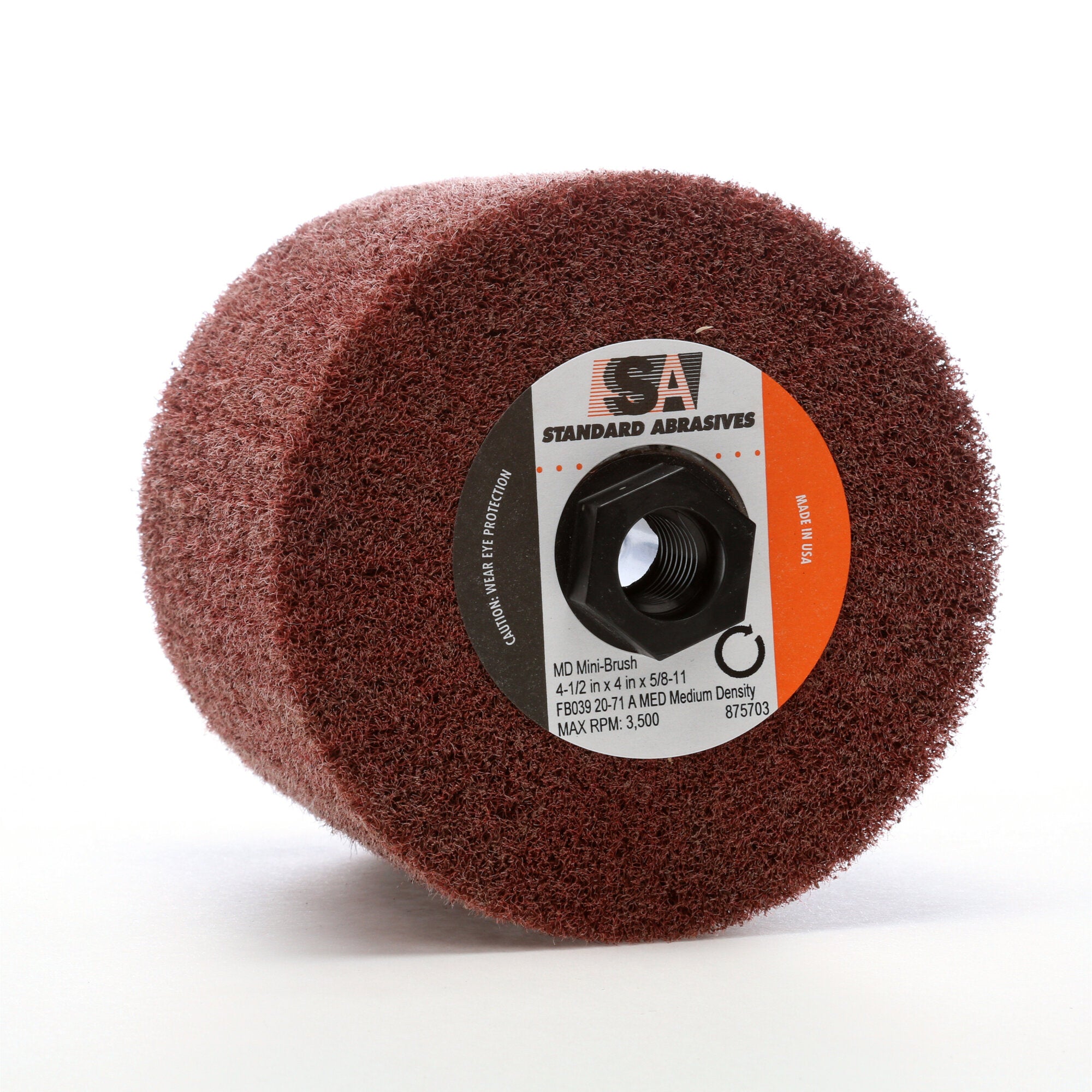 The Standard Abrasives MD Mini-Brush features medium density (MD) Buff and Blend material for efficient restoration of original, high-quality finishes on fabricated steel parts. While welds or other imperfections might detract from a fine finish, the original luster can still be salvaged even revitalized and renewed with the help of this abrasive brush.Restoring Original Finishes