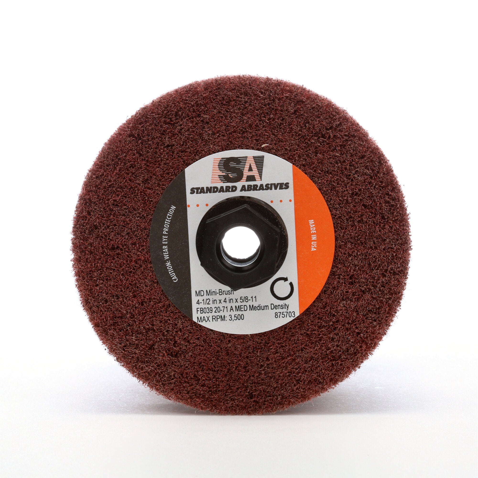 The Standard Abrasives MD Mini-Brush features medium density (MD) Buff and Blend material for efficient restoration of original, high-quality finishes on fabricated steel parts. While welds or other imperfections might detract from a fine finish, the original luster can still be salvaged even revitalized and renewed with the help of this abrasive brush.Restoring Original Finishes