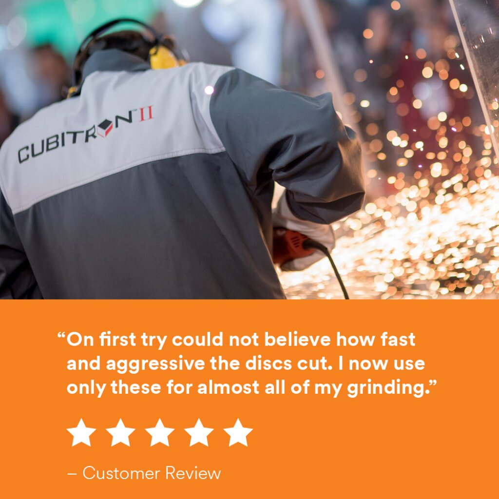This premium fibre disc raises the bar in speed and stock removal. With 3M Precision-Shaped Grain, 3M engineers developed a process for generating triangular shaped ceramic grains that are electrostatically oriented on the backing to form sharp peaks and maximize cutting potential. These peaks act like individual cutting tools that slice through metal, and continuously fracture into new sharp cutting edges. The grains wear evenly and self-sharpen, reducing heat due to friction to deliver up to twice the life of other fibre discs, with less grinding pressure. The result is that 3M Cubitron™ II Fibre Disc 982C out-cuts and outlasts every conventional ceramic industrial abrasive disc on the market, maximizing productivity and helping reduce your overall abrasive spend.
