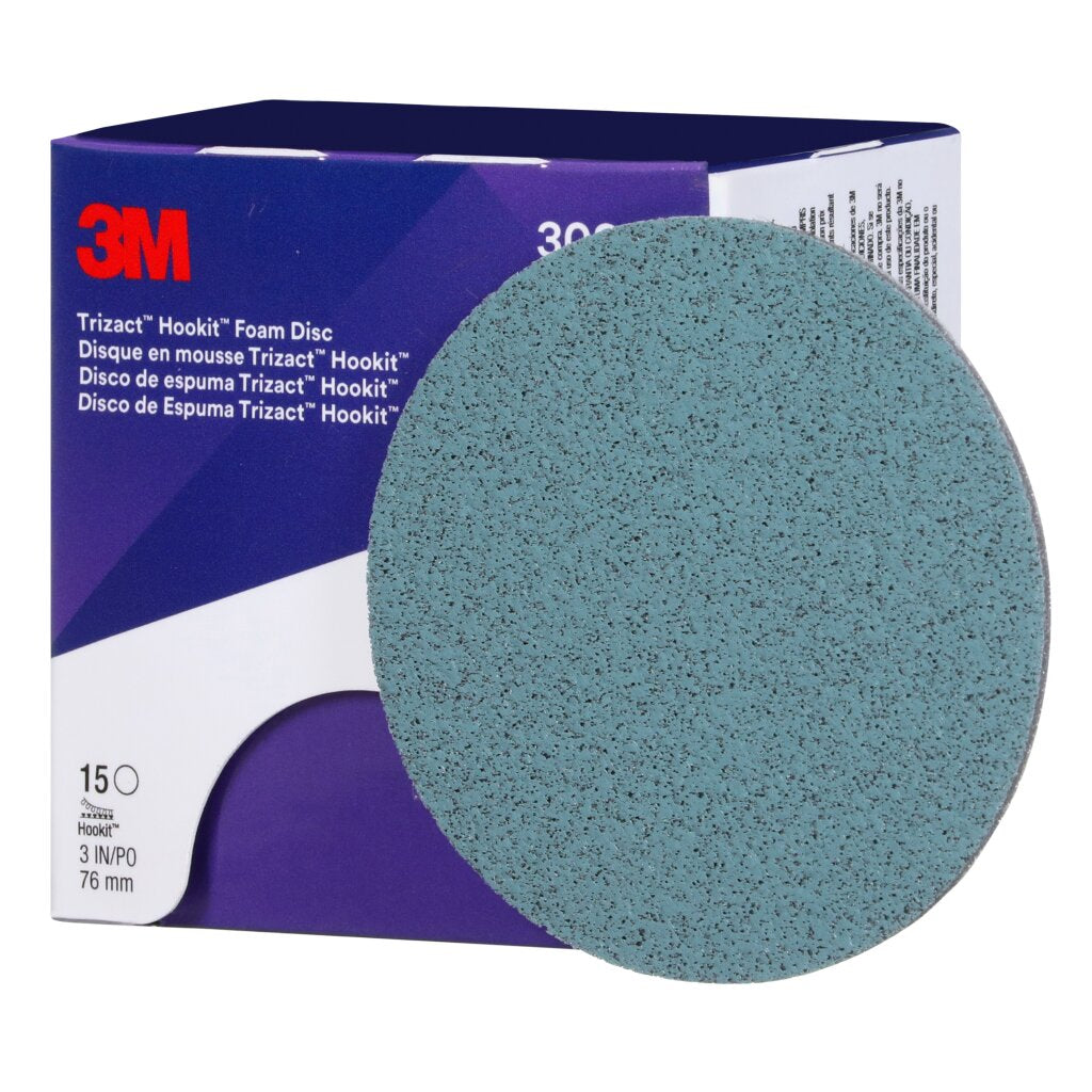 The 3M Trizact Hookit Foam Abrasive Disc removes fine sand scratches on painted surfaces to reduce the amount of time spent compounding. Three-dimensional mineral abrasive structures are distributed uniformly across the disc surface and wear evenly for consistent finishes, longer disc life and reduced material costs. Foam backed discs are part of the 3M Perfect-It Paint Finishing System.Advanced Abrasives for Collision Repair
