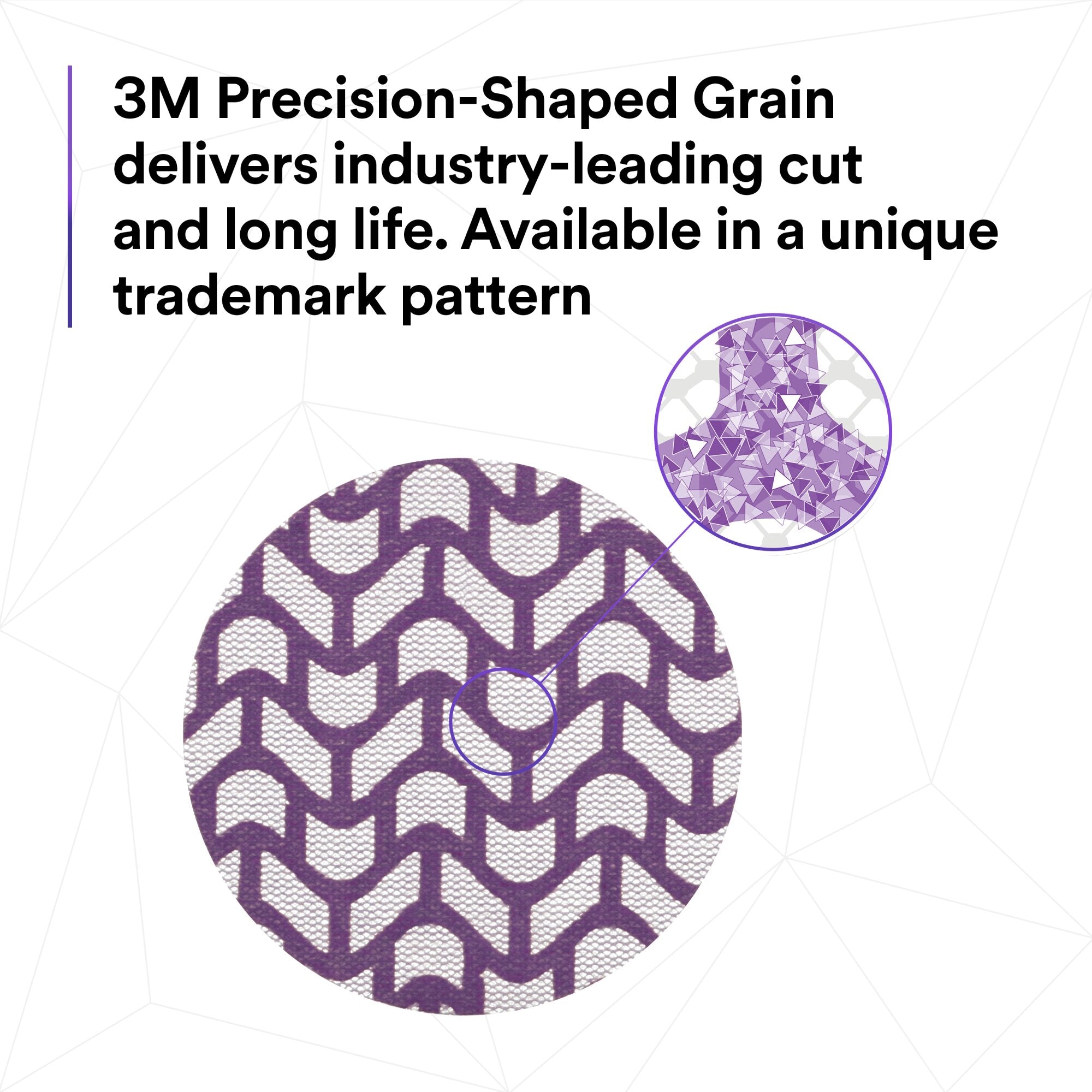 3M has eliminated the tradeoff between dust extraction and disc performance. By combining legendary 3M Precision-Shaped Grain technology with a net backing, 3M Xtract™ Cubitron™ II Net Disc 710W achieves an industry-leading cut-rate while allowing for virtually dust-free sanding. Ceramic 3M Precision-Shaped Grain continually fractures into sharp cutting edges, delivering twice the abrasive life and cut-rate of leading competitor net discs.