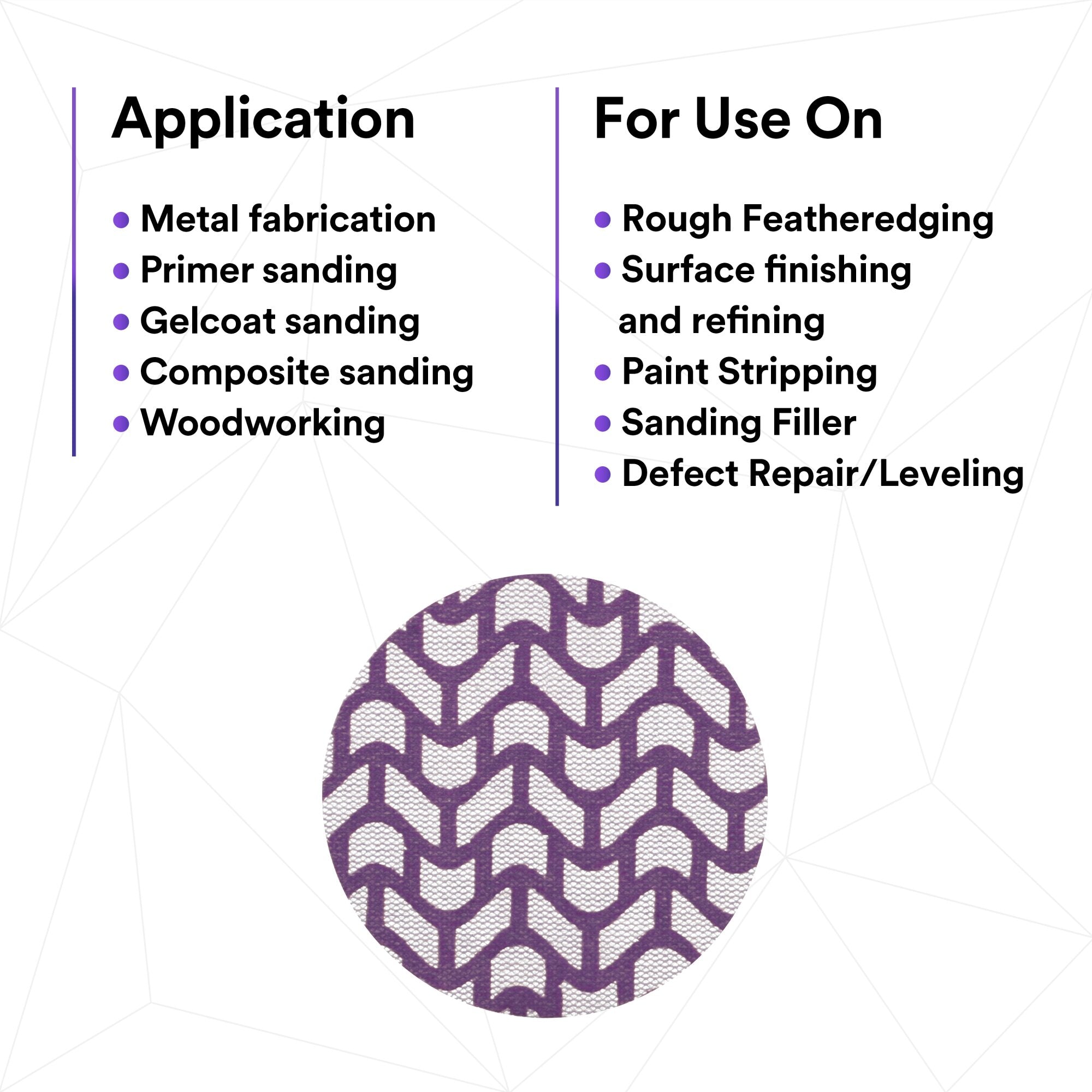 Dust extraction meets industry-leading cut-rate in 3M Xtract™ Cubitron™ II Net Disc 710W. This premium sanding disc features a unique abrasive pattern on a net backing that allows for virtually dust-free sanding, with legendary 3M Precision-Shaped Grain technology. You’ll finish more parts per disc with less dust in the environment, boosting productivity without sacrificing dust extraction.Sanding, reimagined.