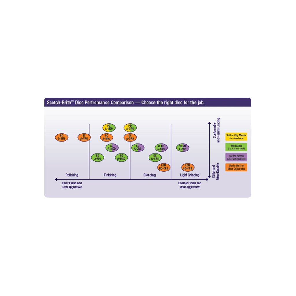 We developed Scotch-Brite™ surface conditioning products with abrasives incorporated into non-woven nylon or synthetic fibers. Combining abrasives with the fibers creates an abrasive system that delivers consistent results for the life of the product. The open-web material runs cool, reducing the risk of part discoloration and warping. The fibers are load resistant and keep the abrasive minerals cutting at high performance by limiting clogging of the fibers, which also extends the life of the disc.