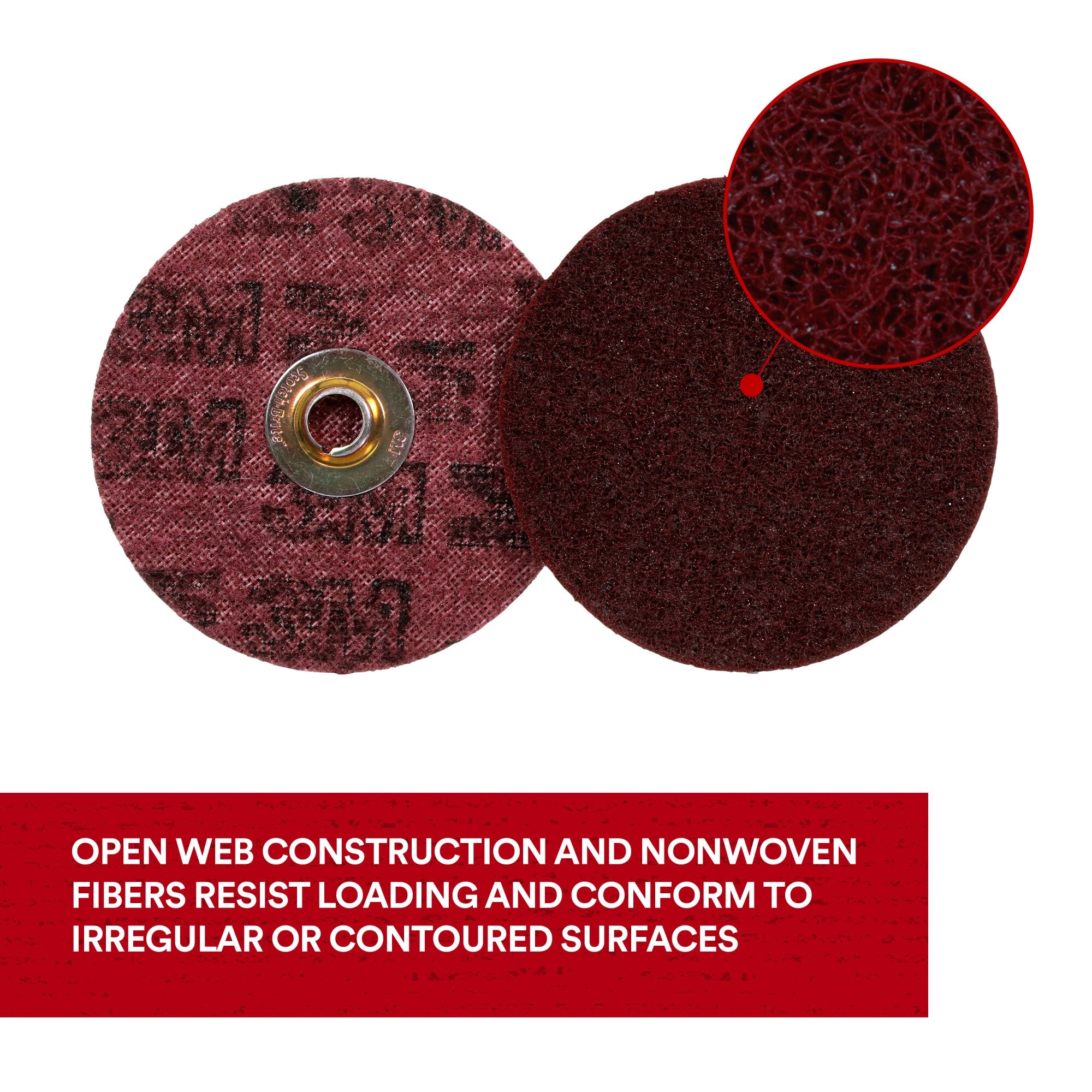 The Scotch-Brite Surface Conditioning TN Quick Change Disc combines a durable, nonwoven disc with an efficient TN quick-change attachment for an effective disc that cleans, finishes, blends and deburrs. The nonwoven fiber construction conforms well to help preserve irregular or contoured surfaces and the TN attachment makes for quick and easy disc changes.Ideal for Blending, Deubrring and Finishing The open-web fiber runs cool and resists loading while the abrasives provide a high cut-rate to give you consistent finishing. The TN attachment offers quick and easy disc change-out, making the Scotch-Brite™ Surface Conditioning TN Quick Change Disc ideal for a range of tasks including blending, deburring, and finishing. Available in Silicon Carbide or Aluminum Oxide Mineral Scotch-Brite™ Surface Conditioning TN Quick Change Discs are available with a choice of silicon carbide or aluminum oxide abrasive mineral. Silicon carbide is a synthetic mineral that is very sharp and commonly used for low-pressure applications such as paint prep and finishing. Aluminum oxide is a hard, blocky mineral that provides high cut-rate and long life. While silicon carbide breaks down faster than aluminum oxide, it produces a finer finish. The Many Benefits of Open Web Abrasives Scotch-Brite™ surface conditioning products were developed with abrasives incorporated into nonwoven nylon or synthetic fibers. Combining abrasives with the fibers creates an abrasive system that delivers consistent results for the life of the product. The open-web material runs cool, reducing the risk of part discoloration and warping. The fibers are load resistant and keep the abrasive minerals cutting at high performance by limiting clogging of the fibers, which also extends the life of the disc.