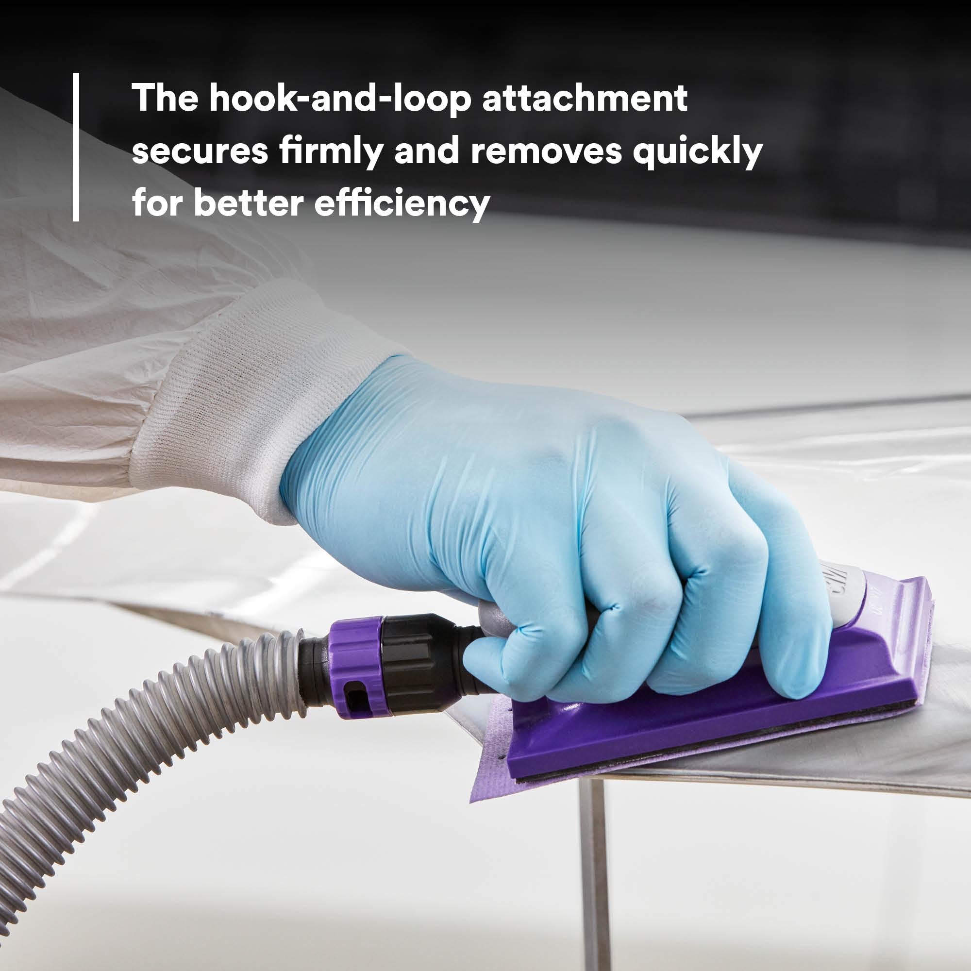 - 3M™ Hookit™ hook-and-loop style abrasive attaches firmly, removes quickly for fast change-out