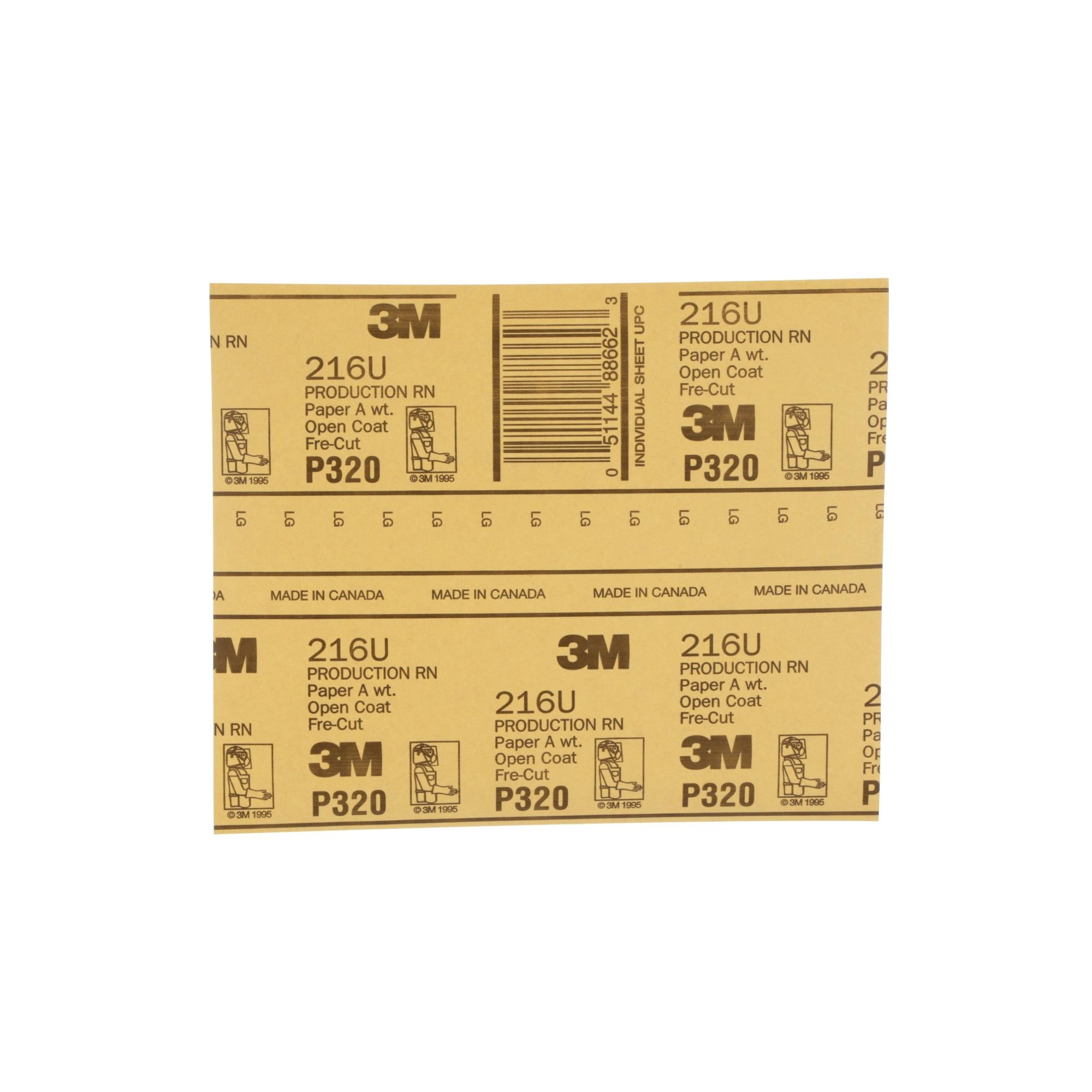 3M Gold Abrasive Sheet, 02541, P320 grade, 9 in x 11 in, 50 sheets per pack