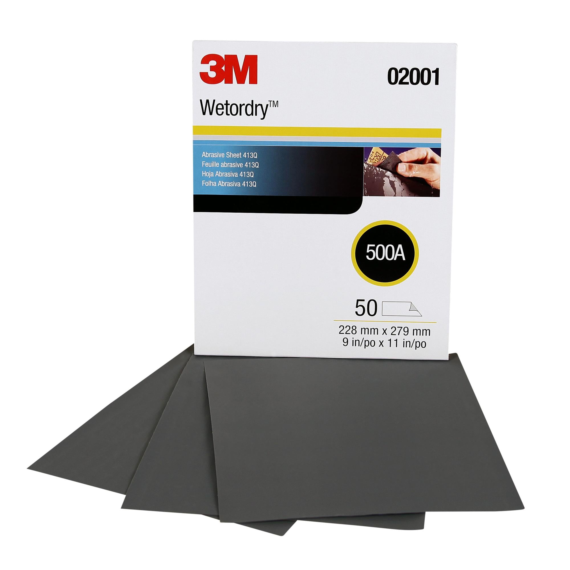 3M Wetordry Abrasive Sheet 413Q, 02001, 500, 9 in x 11 in, 50 sheets per carton