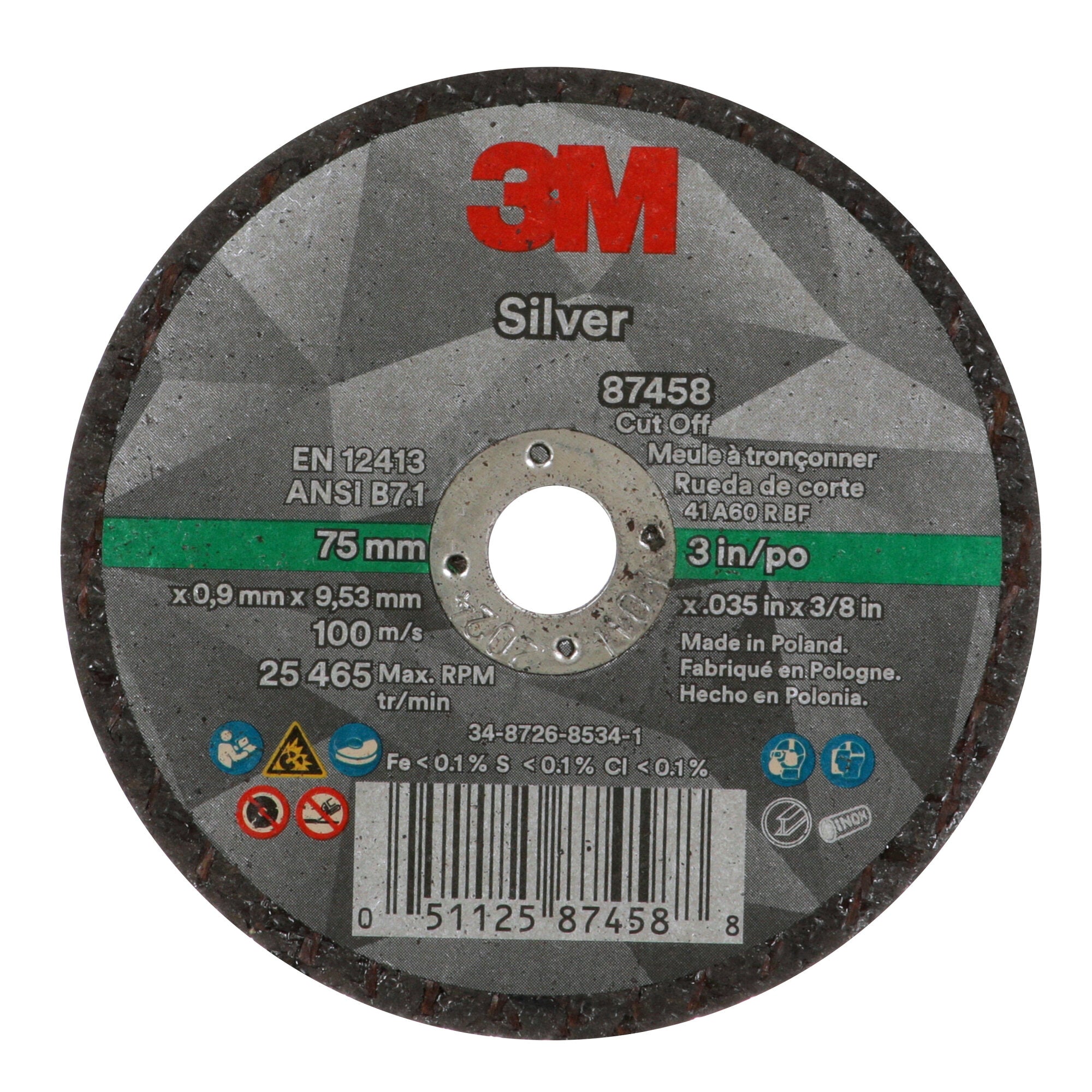 3M Silver Cut-Off Wheel, 87458, T1, 3 in x .035 in x 3/8 in
