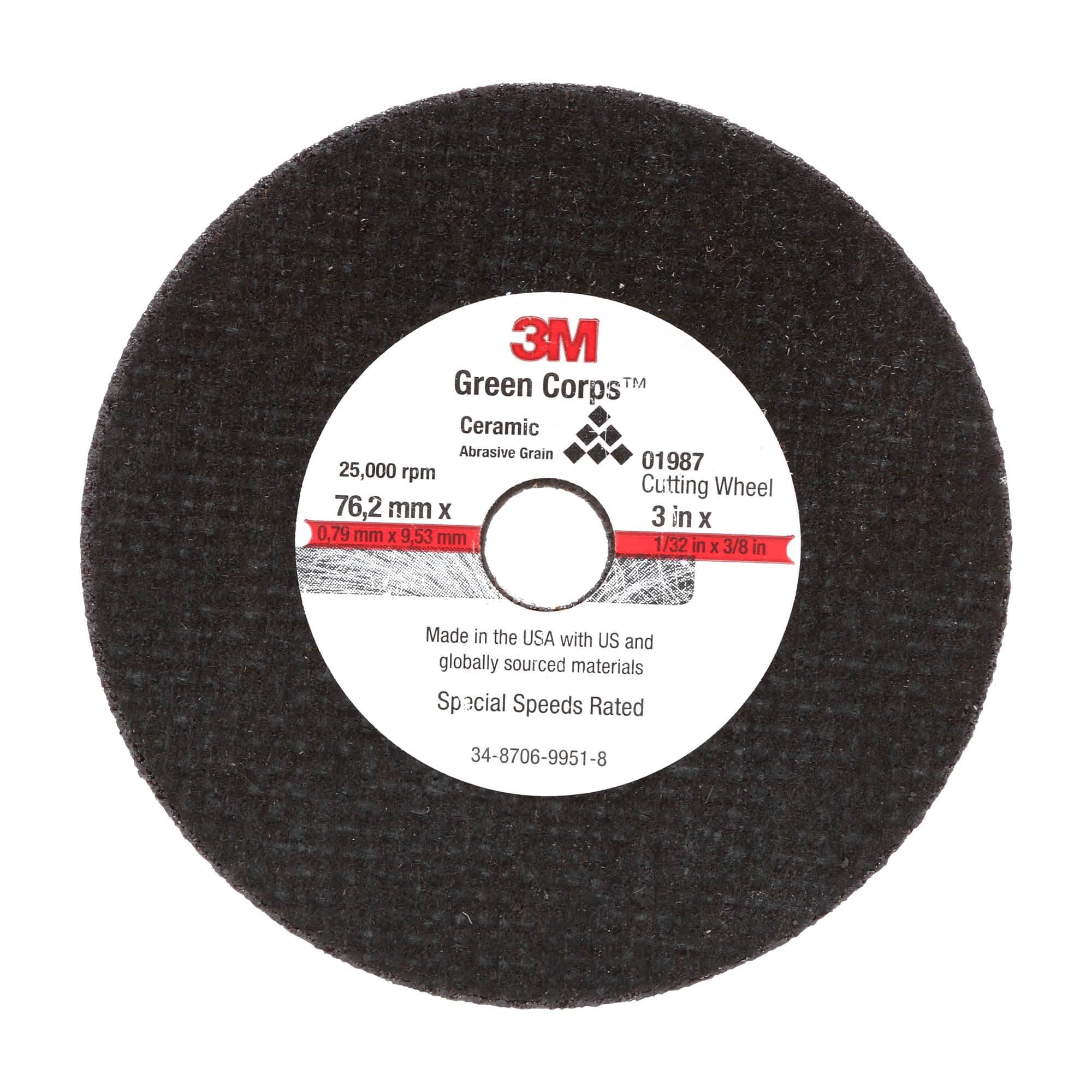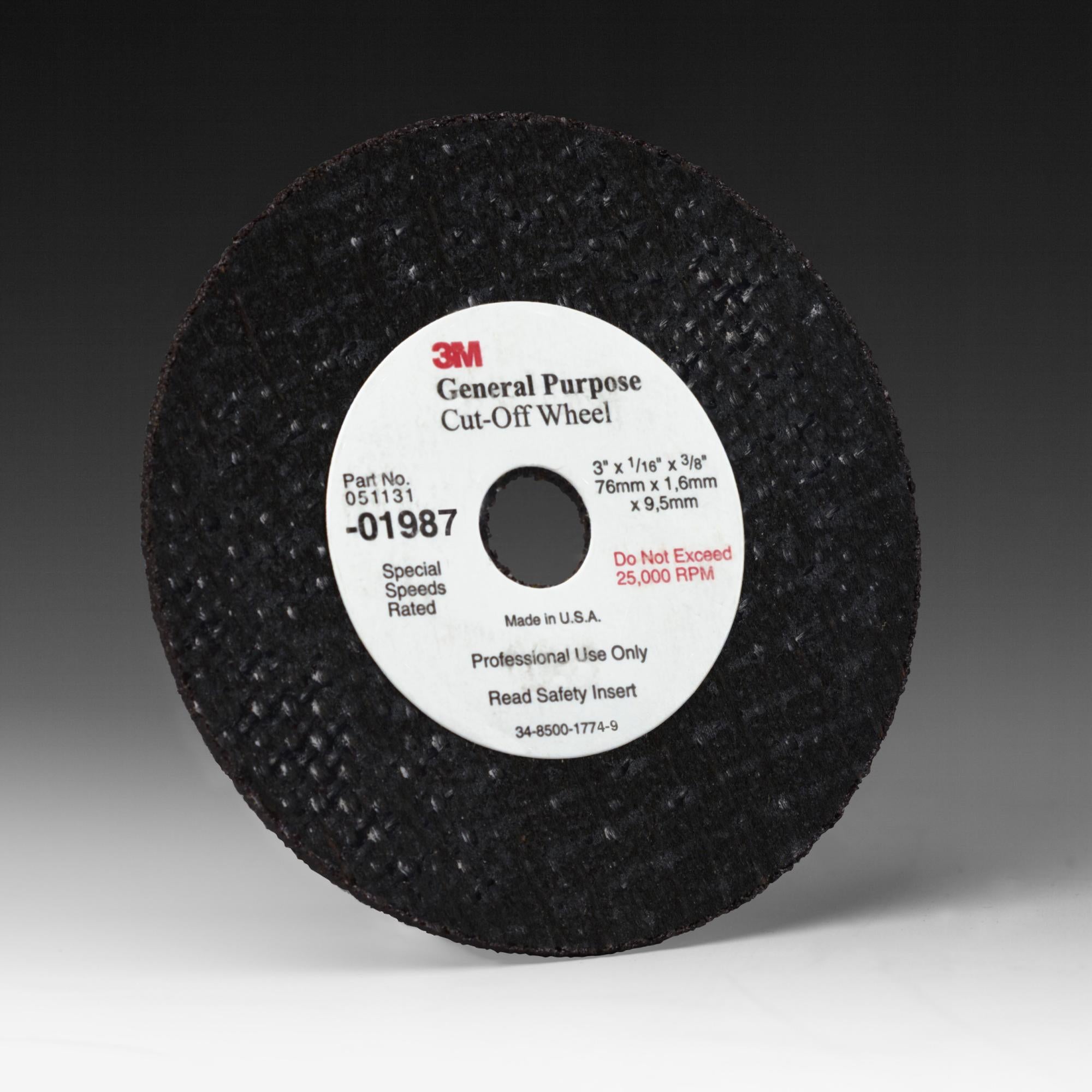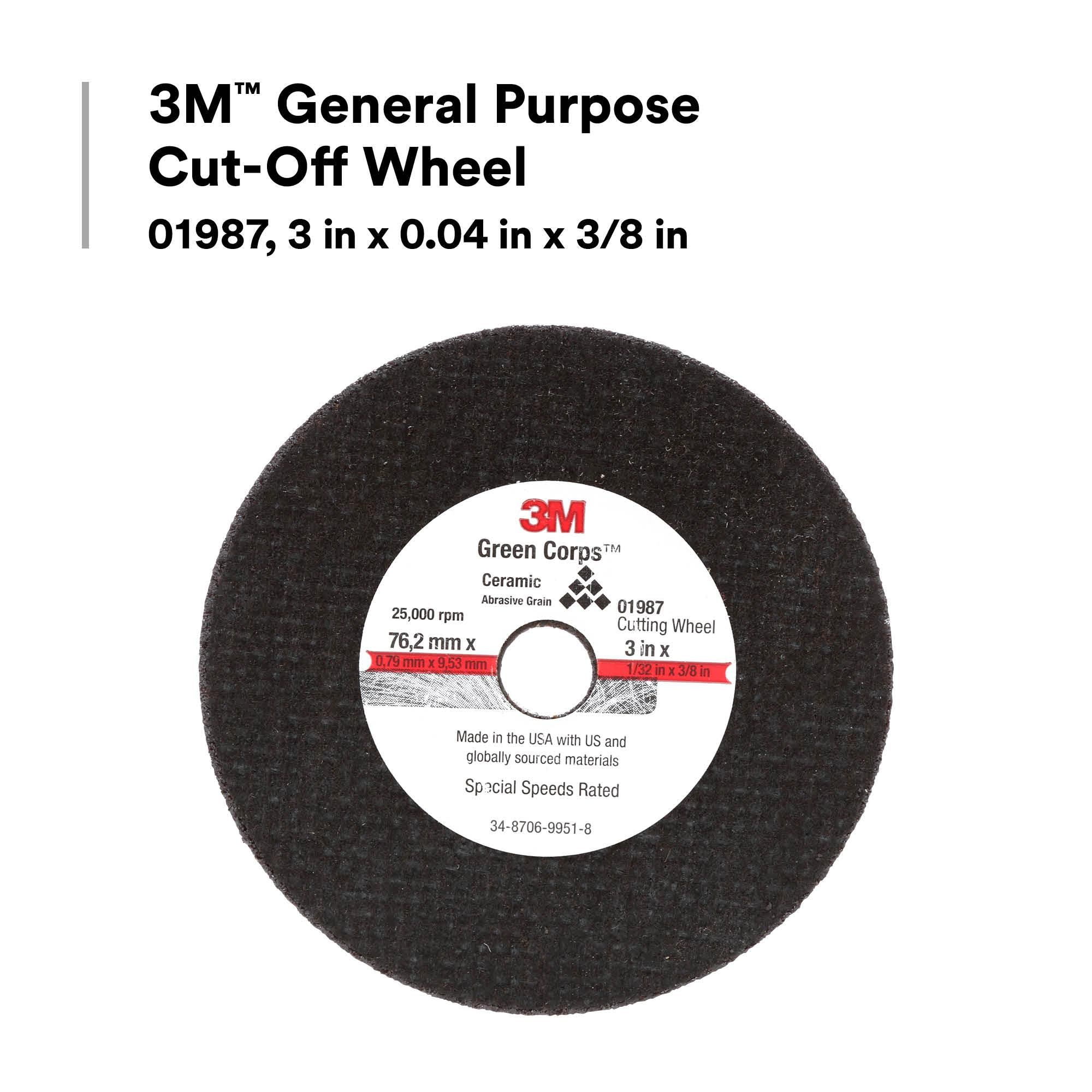 3M General Purpose Cut-Off Wheel 01987, 3 in x 0.04 in x 3/8 in