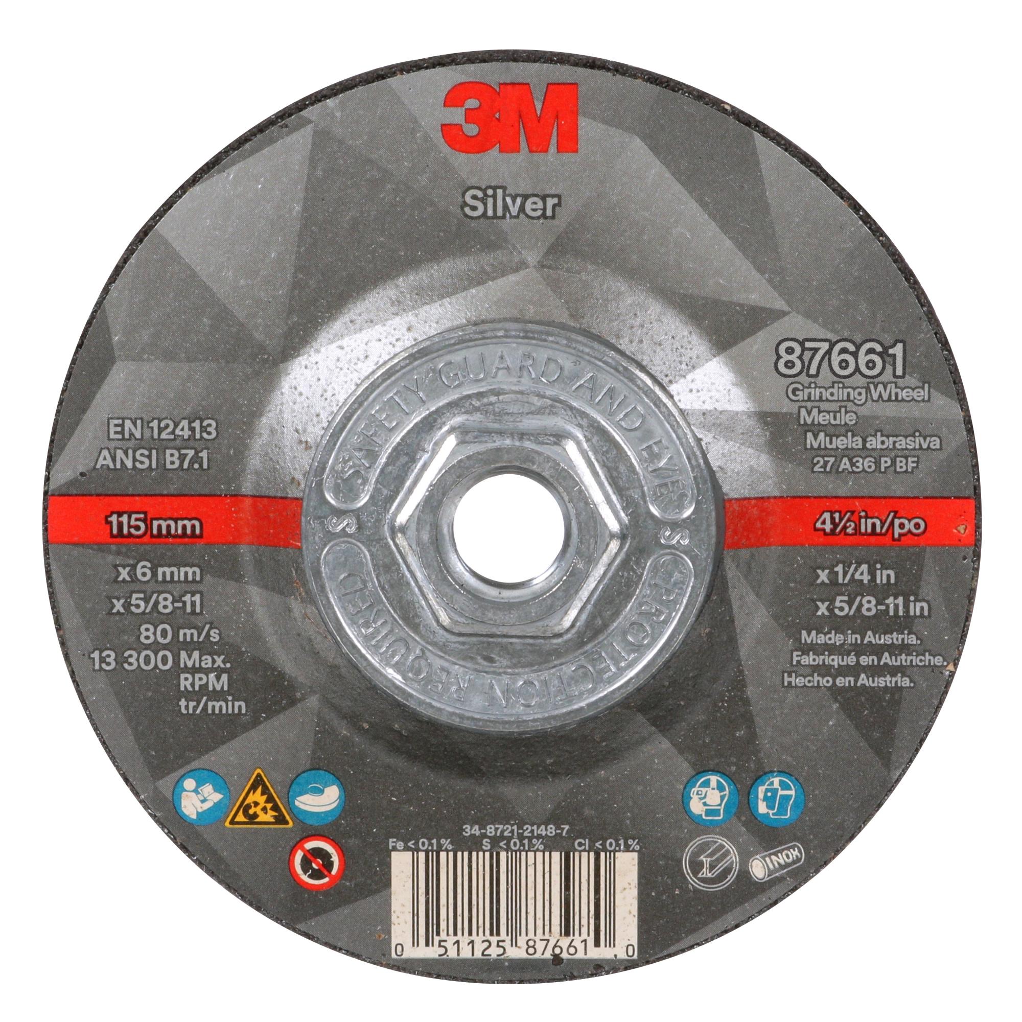 3M Silver Depressed Center Grinding Wheel, 87661, T27 Quick Change