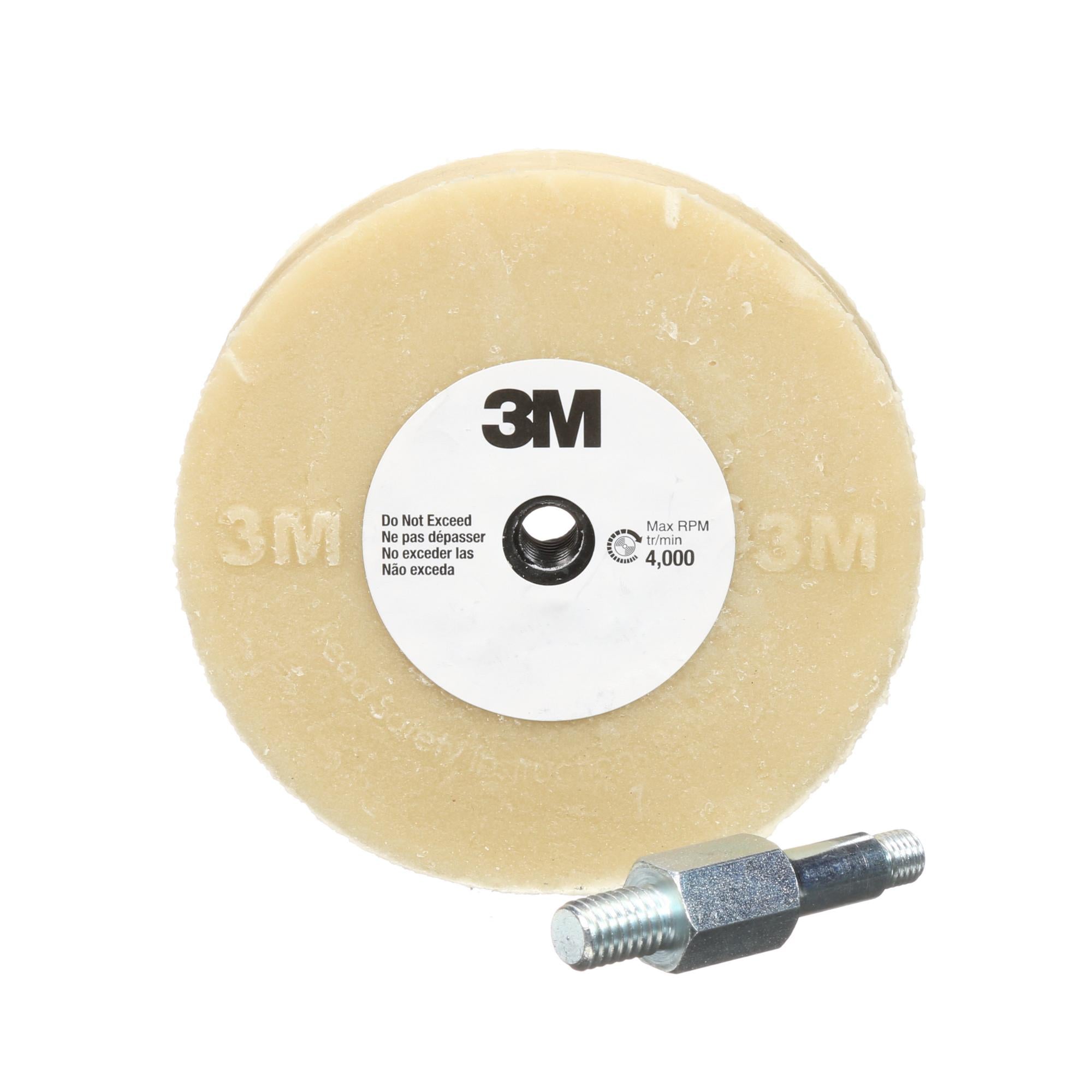 The 3M Stripe Off Wheel was designed for high-speed removal of vinyl, decals, tape, graphics and double sided molding striping and trim. Engineered to help operators effectively and efficiently remove decals, it won't damage the surface below.Our 3M™ Stripe Off Wheel moves in a rapid, circular motion to remove unwanted decals and stripes. The solid molded wheel rids the substrate of decals with friction, instead of abrasives, thereby preventing scratching and damage to the substrate. The wheel can be used at a Max RPM of 4,000. Operators should note that it is important not to exceed the maximum operating speed, because it may compromise the product's performance. Additionally, operators should ensure that the substrate is not heat sensitive, as repeated friction will create heat.