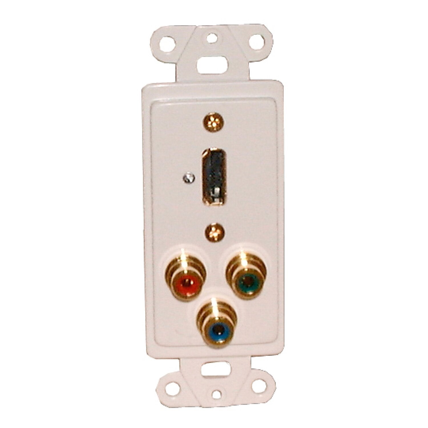 Enhance your AV setup with our HDMI Plus Wall Plate, featuring seamless integration of HDMI and component video connections. This plate includes HDMI and three RCA inputs (red, blue, green), ensuring high-quality transmission for both digital and analog signals, ideal for home theaters and multimedia installations.