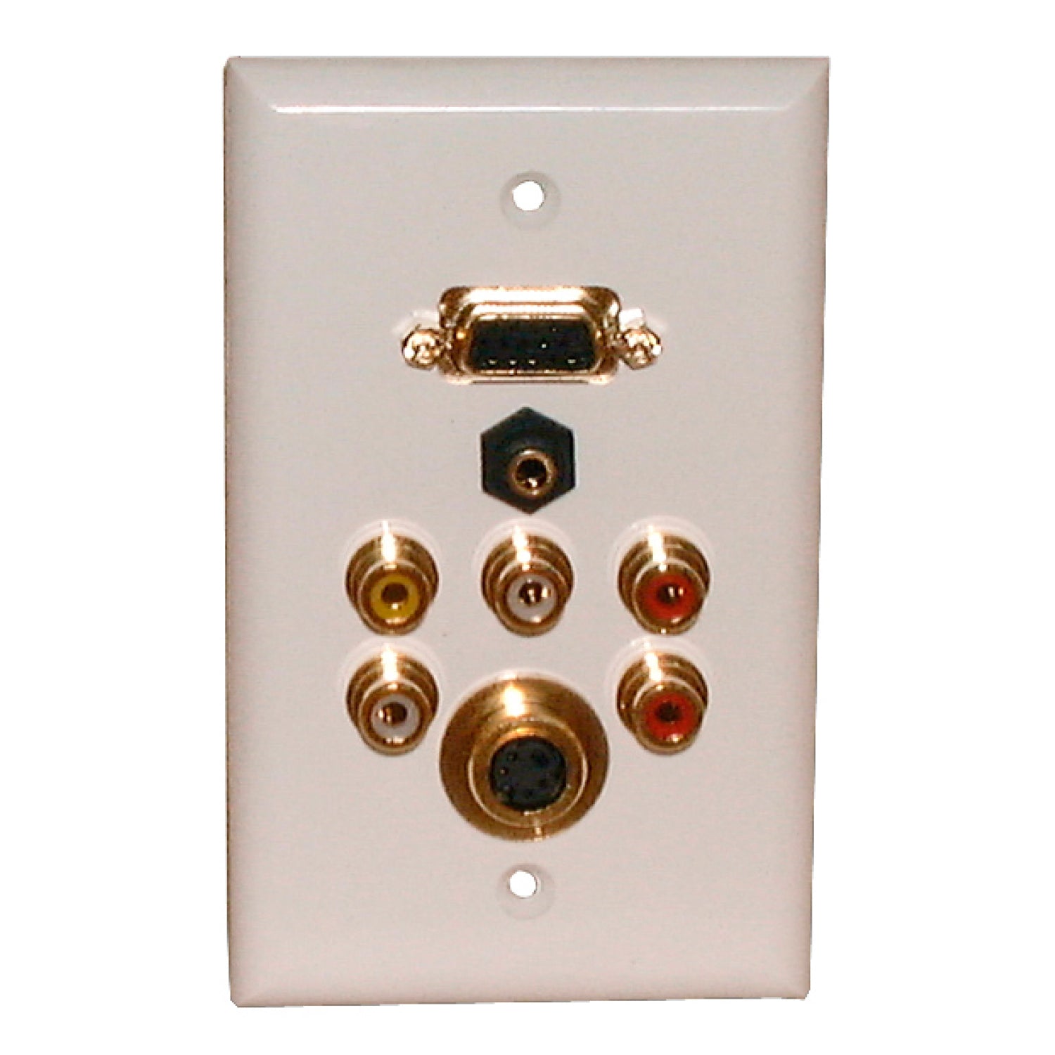 - VGA + 3.5mm Stereo + Audio/Video (Red,White,Yellow) + Audio (Red/White) + S-VHS