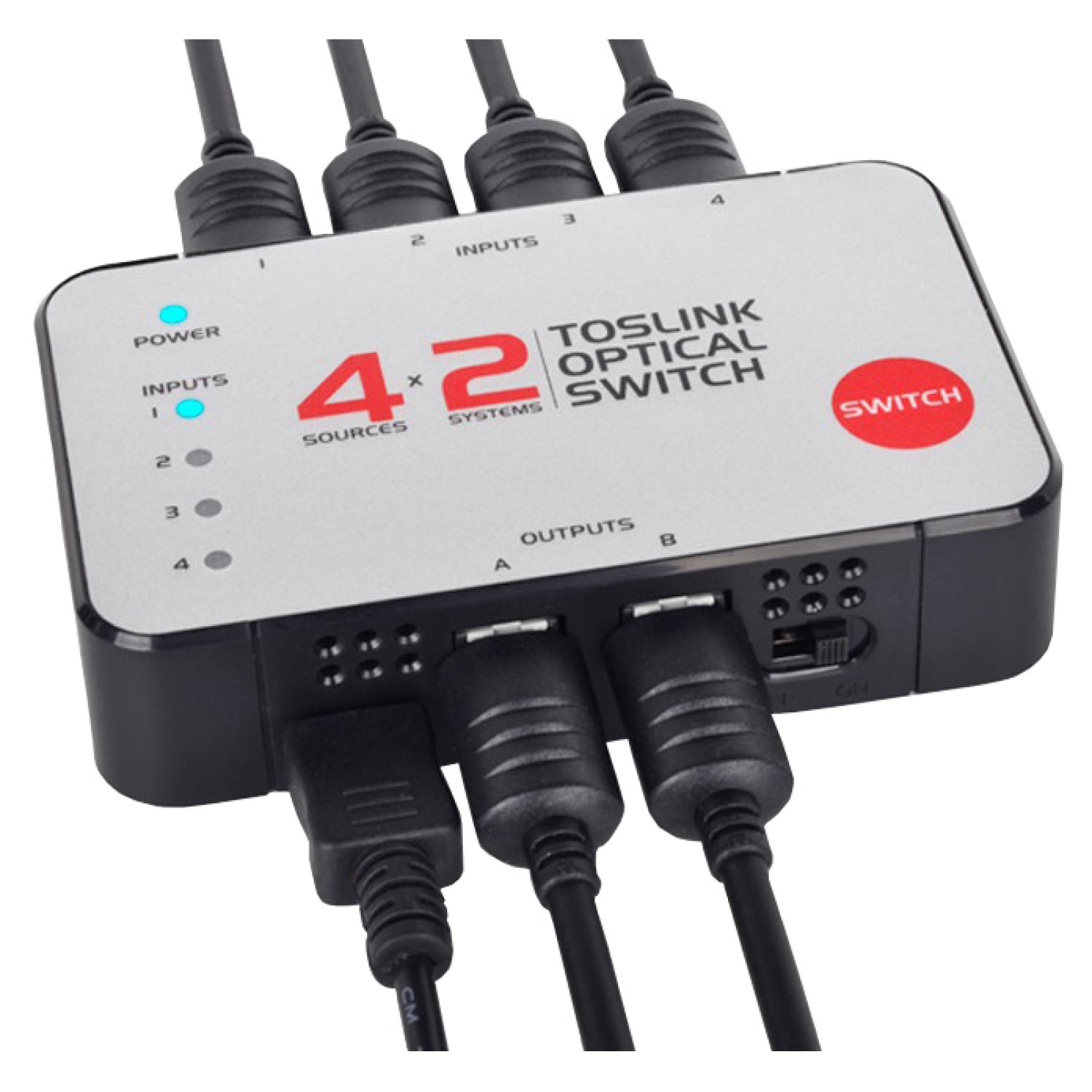 - 4 Toslink (optical) inputs and 2 toslink (optical) outputs
