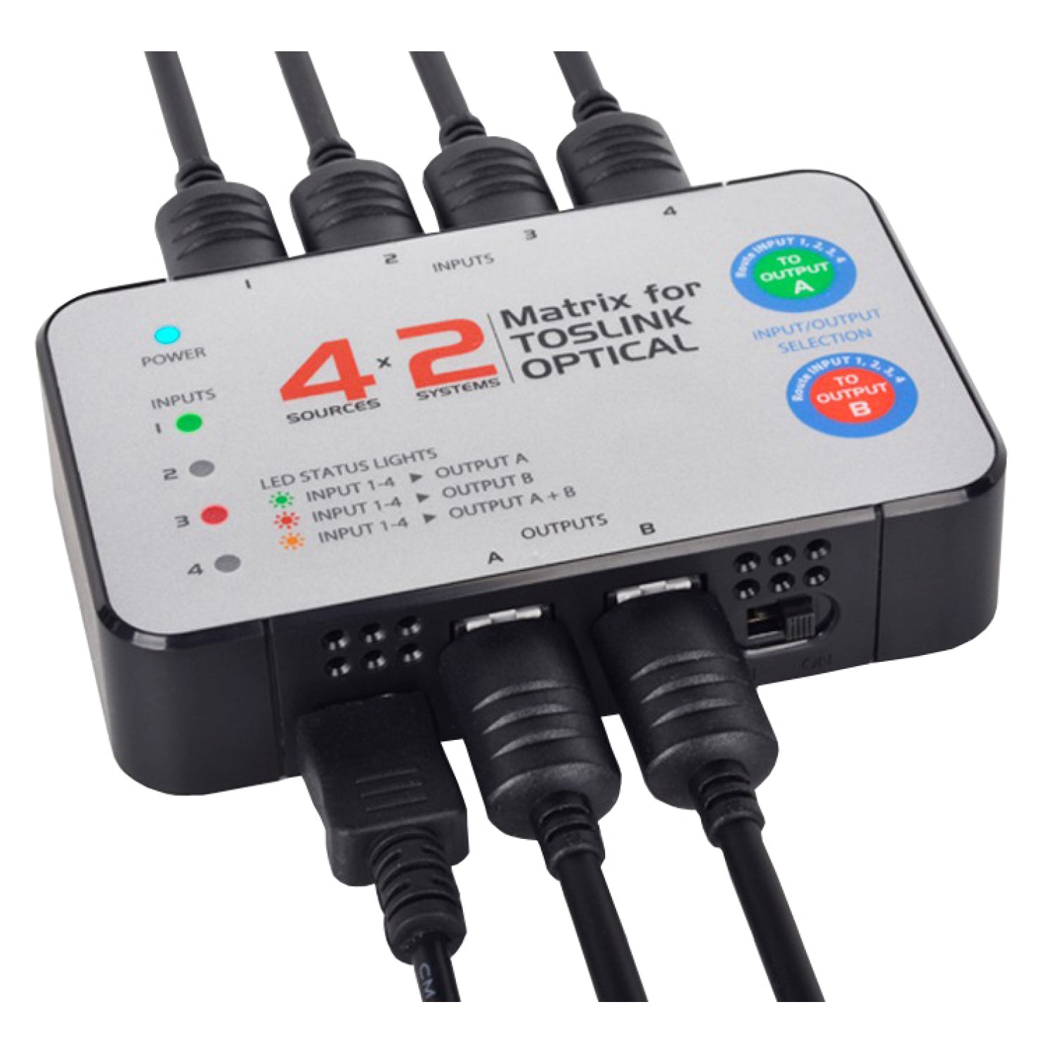 4 x 2 Matrix Digital Audio Selector is a versatile device that allows users to switch between four different audio sources and distribute them to two separate outputs. Ideal for home theaters or professional setups, it ensures seamless audio management with high fidelity and minimal signal loss, enhancing overall audio experience.