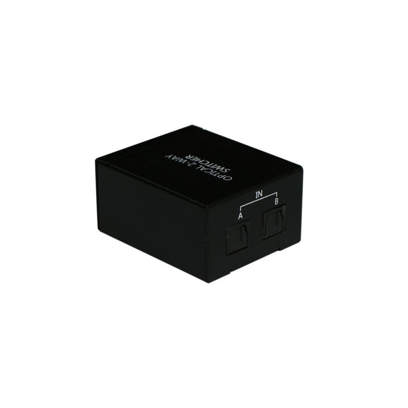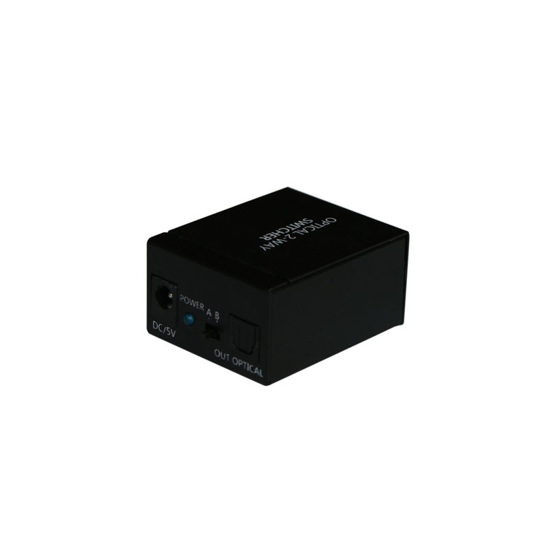 The 2 to 1 Optical Audio Switcher is a device with two optical inputs and one optical output. This device allows users with multiple optical sources to connect for one output display while all signals can bypass without delay.