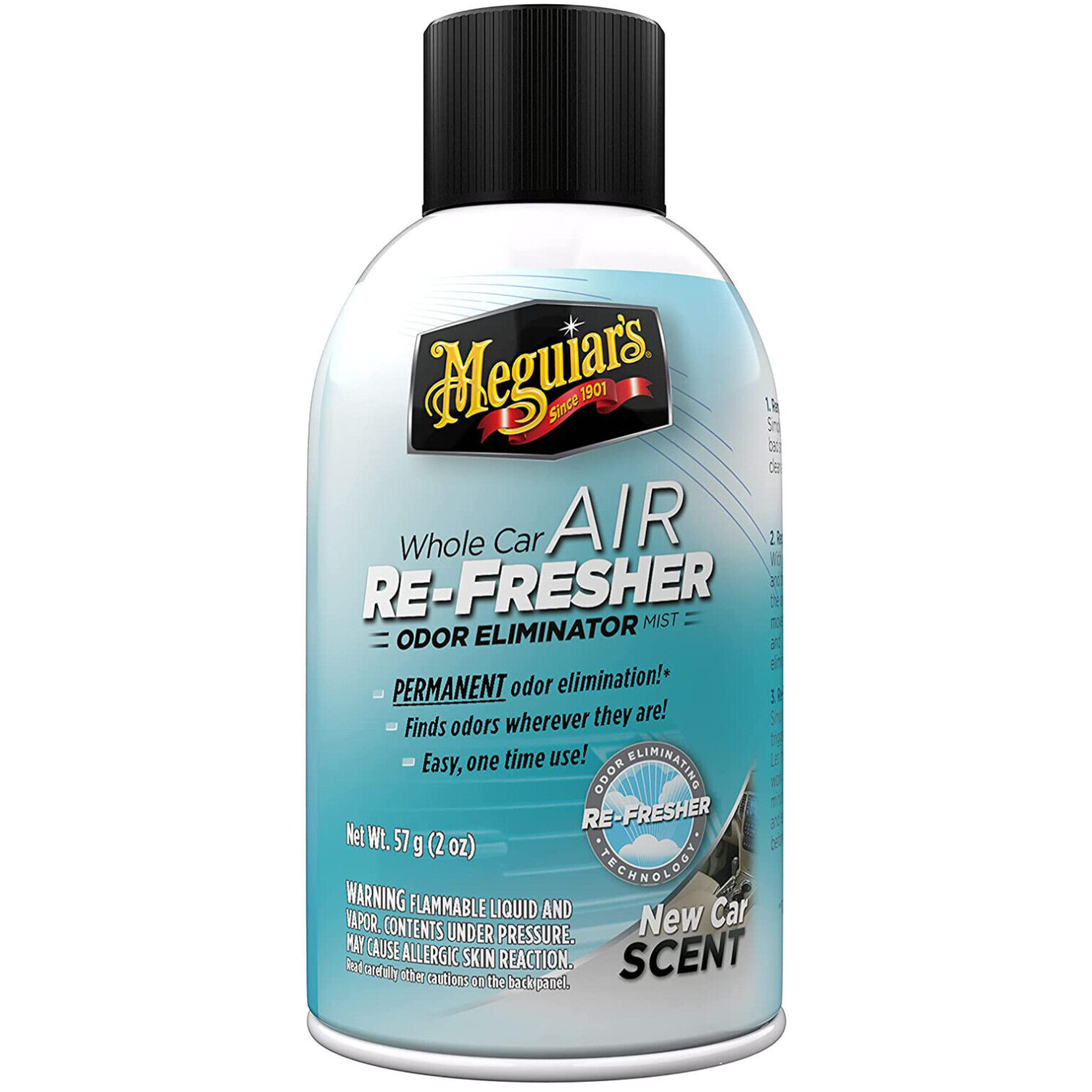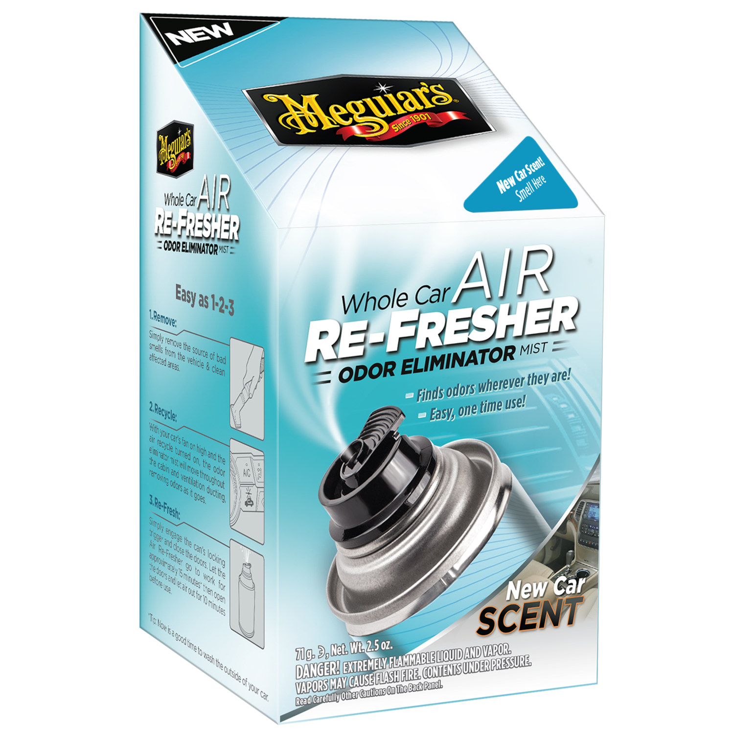 Has your car lost that "New Car" smell? Meguiar's® advanced Re-Fresher technology not only removes unwanted odors wherever they hide, but also replaces odors with a pleasant new car scent that lasts for weeks. * Our molecular odor eliminating chemistry works great at permanently removing smells like cigarette smoke, wet dog, work-out gear and more. *Meguiar's® Re-Fresher technology permanently removes existing bad odors through chemical bonding at a molecular level.