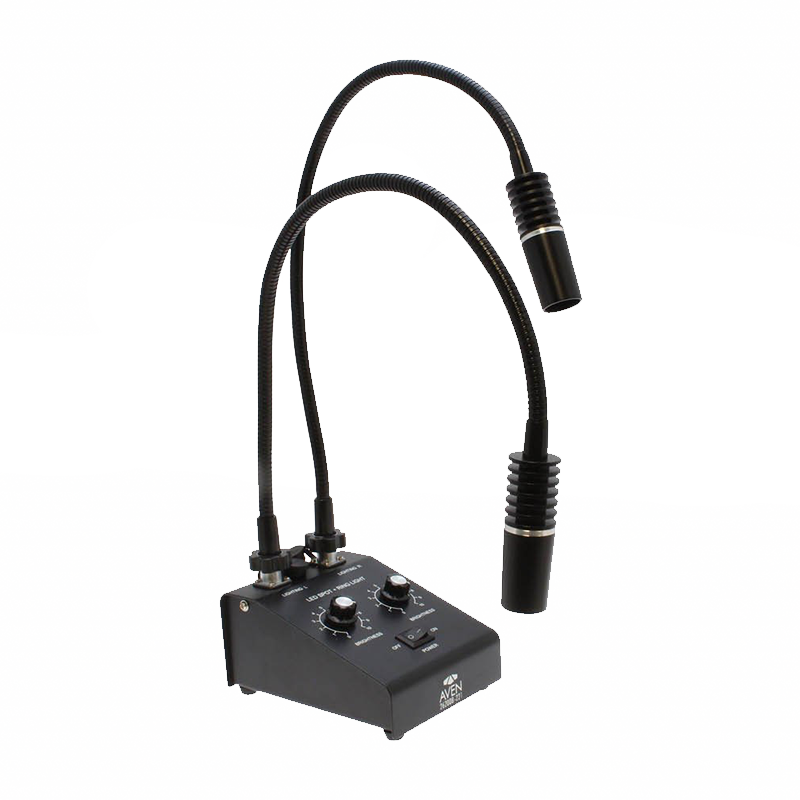 Aven’s LED Dual Gooseneck Spotlight Illuminator gives users the ability to inspect at any angle and at any working distance. Each flexible gooseneck arm can be swiveled and bent to the desired position, and stays in place. Use one LED illuminator—or both—and control the light intensity of each illuminator as desired.