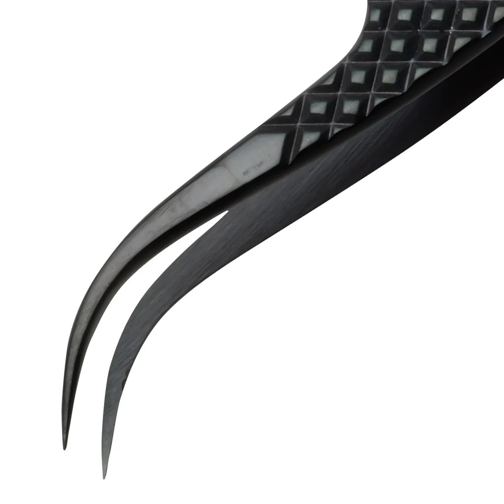 Crafted from anti-magnetic & anti-acid 304 stainless steel, these tweezers are designed to withstand the rigors of daily use while maintaining their precision.The tweezer's elegant black finish is achieved through a sophisticated Physical Vapor Deposition (PVD) process, which fuses a durable Titanium Carbide coating to the surface. This advanced technique not only enhances the aesthetic appeal but also imparts superior scratch and corrosion resistance, ensuring the tweezer's longevity and reliability.