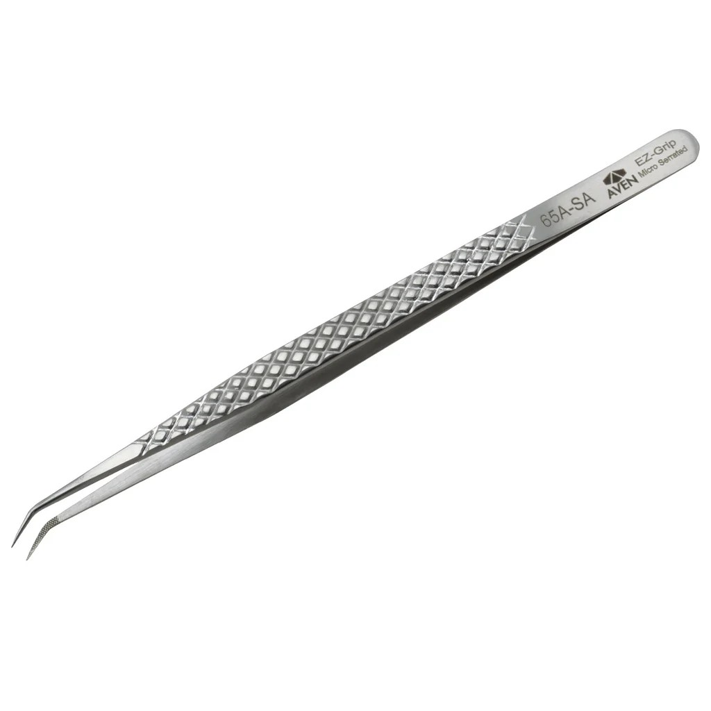 Aven Tools 18076EGS EZ Grip Micro-Serrated Stainless Steel Tweezers, 65A Pattern