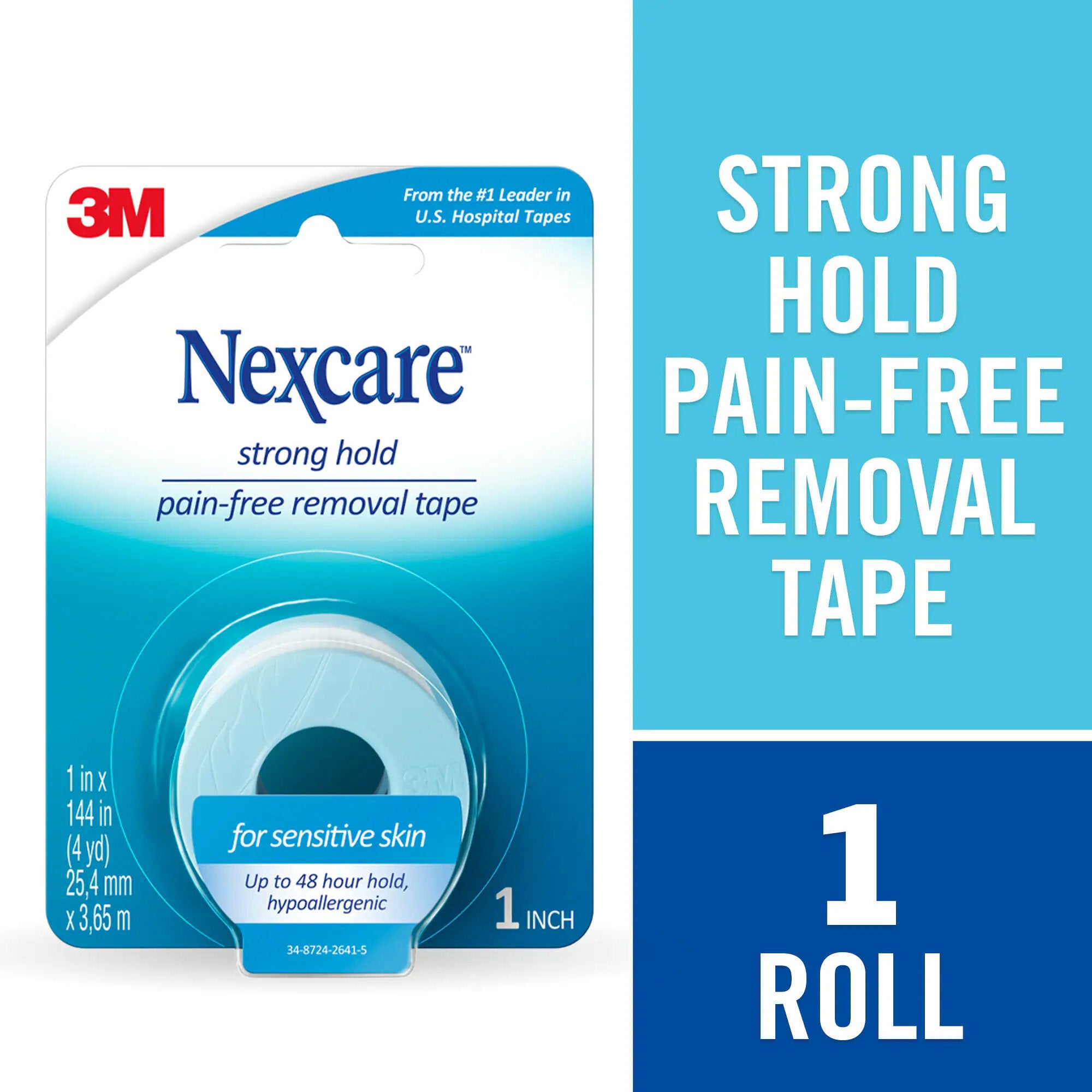 A tape ideal for fragile or sensitive skin that is water resistant, hypoallergenic, latex free for securing bandages or dressings. The #1 paper tape in hospitals. Hospital brand - 3M Kind Removal Silicone Tape.Sensitive skin calls for extra gentle care. Nexcare™ Strong Hold Pain-Free Removal Tape keeps sensitive skin in mind during removal with a breathable, hypoallergenic formula and clean, pain free removal. From the #1 leader in US=.S. hospital taped, this water resistant medical tape is equipped with an adhesive that holds securely for up to 48 hours, yet is repositionable on the skin. Whether you're caring for your child, or your rebel rousing grandmother, treat their skin with a little extra TLC and reach for Nexcare™ Strong Hold Pain-Free Removal tape.