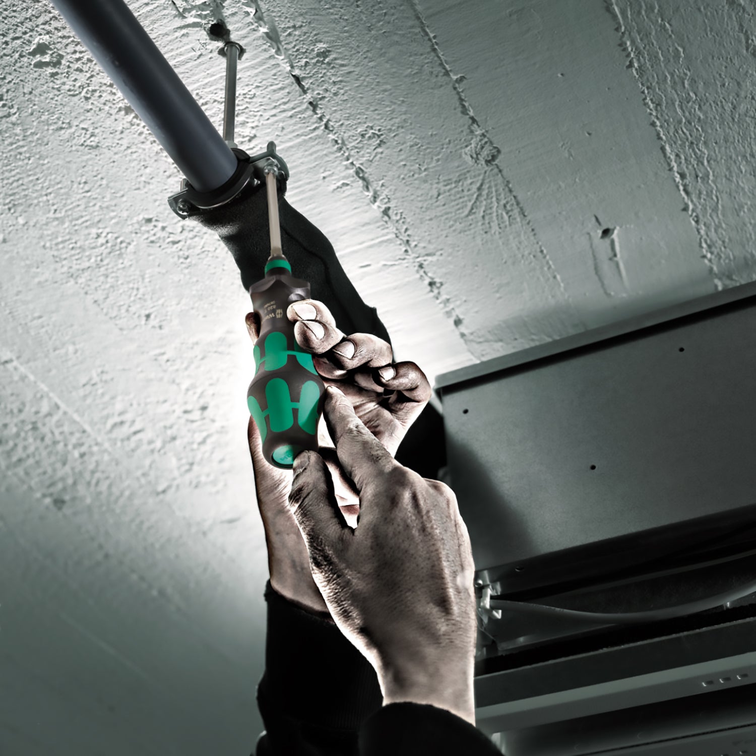 Wera's Kraftform Kompakt Turbo driver quadruples your work speed with just one click. No batteries necessary, small gears inside the driver speed things up purely with mechanical force.