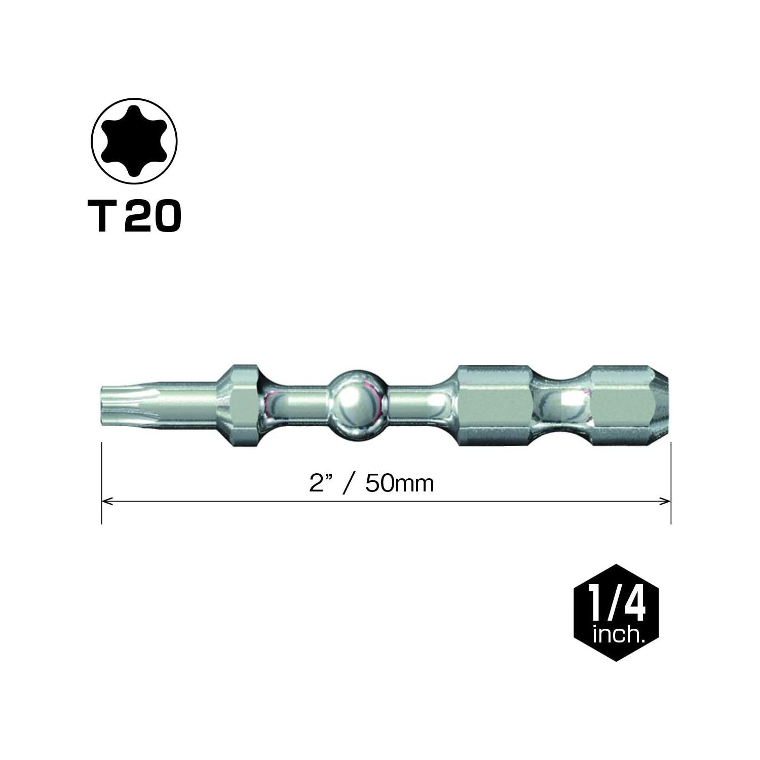 This 1/4" Drive Torx T20 power bit from Voha is designed for use with an impact driver. Featuring special alloy steel and in-house optimum heat-treatment, the bit has a hardness of HRC62, and is both magnetized and durable. Made in Japan, this bit is built to last.