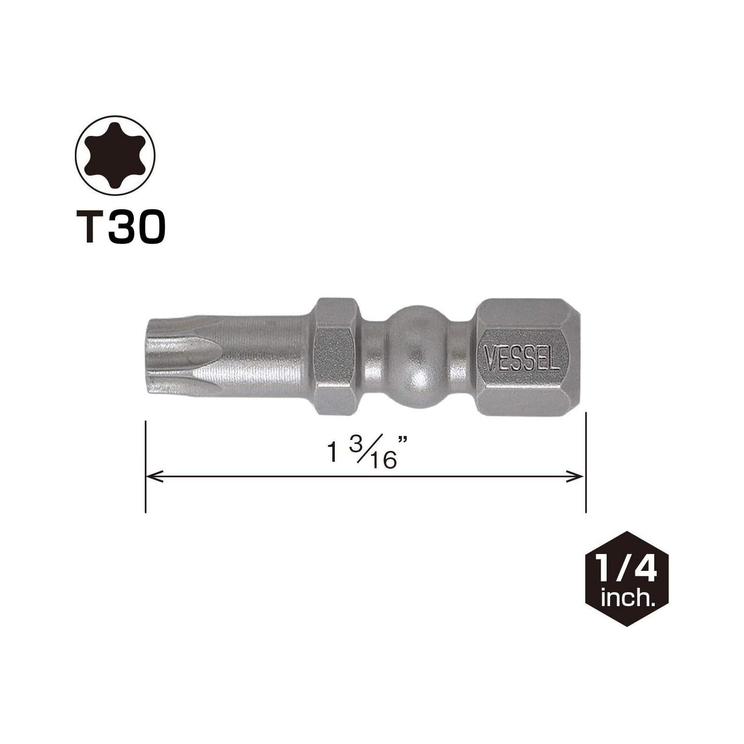 Vessel Tools IBTX3030P25K Impact Ball Torsion Bits T30 x 30, 25 Pack