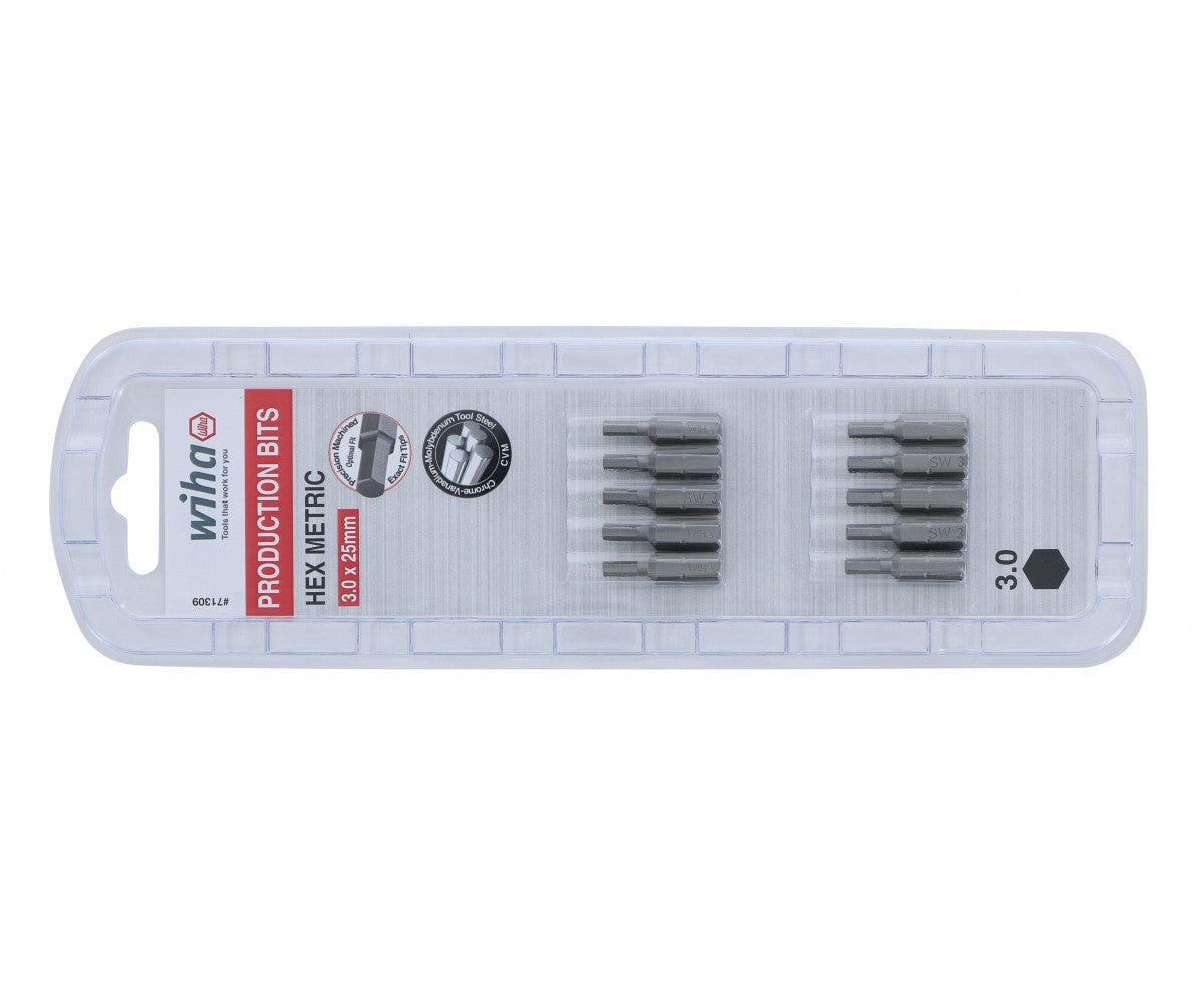 Wiha Tools 71309 Hex Metric Insert Bits, 3.0 mm x 25 mm, 10 Pk.