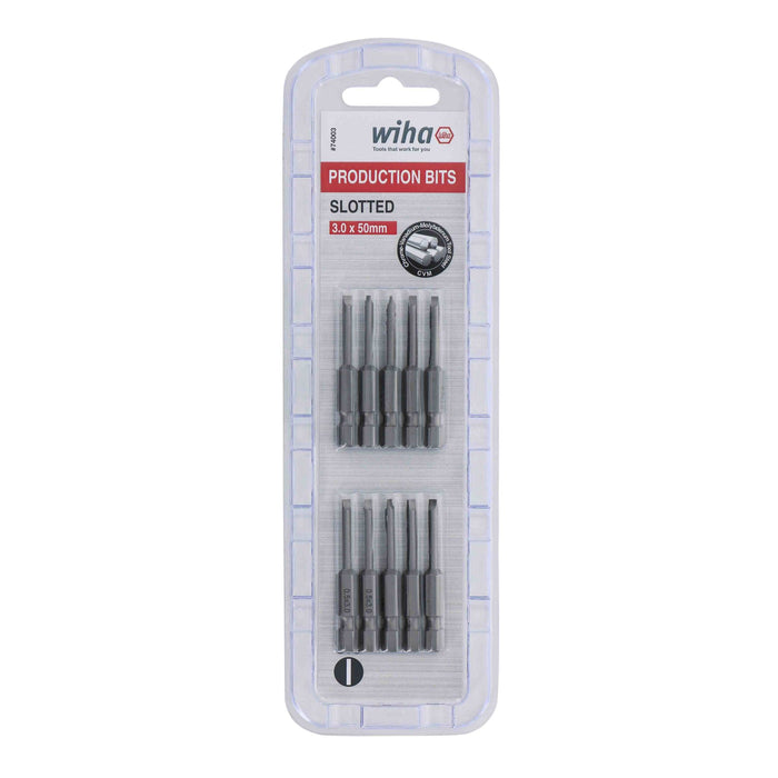 Wiha Tools 74003 Slotted Power Bit, 3.0 mm x 50 mm, 10 Pk.