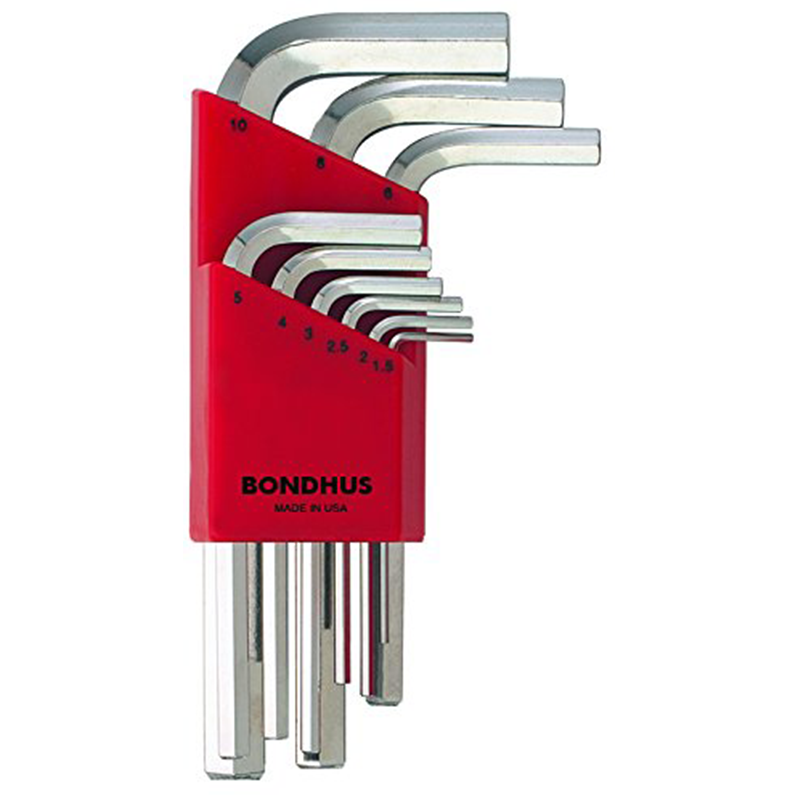Bondhus 16299 Set of 9 Hex L-wrenches with BriteGuard Finish, Short Length, Sizes 1.5-10mm