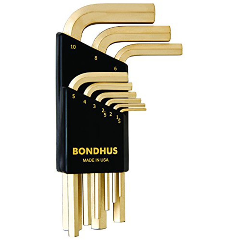 Bondhus 38299 Set of 9 Hex L-wrenches with GoldGuard Finish, Short Length, Sizes 1.5-10mm