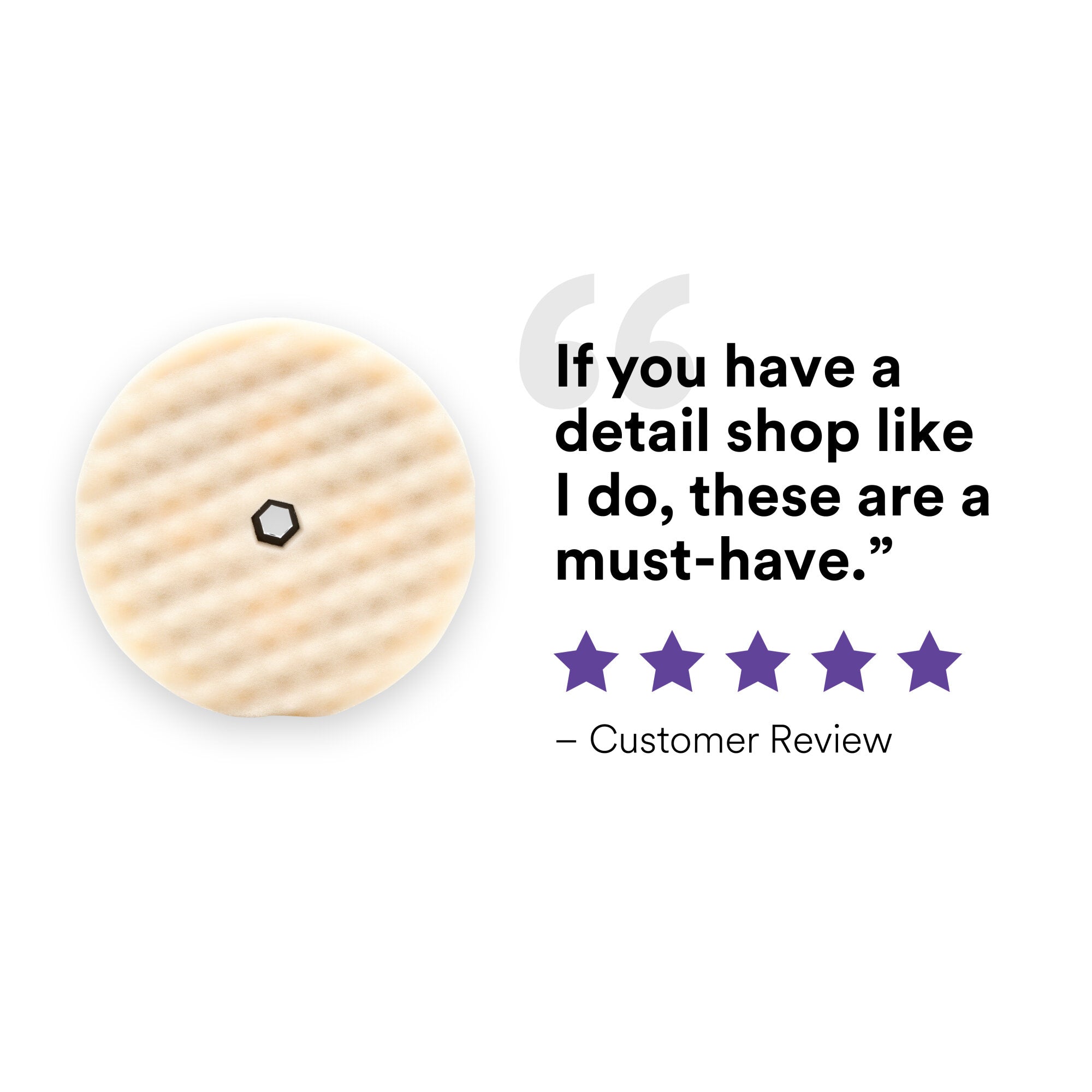 We developed these foam pads as part of our Perfect-It™ Paint Finishing System to keep pace with evolving paint and clear coat technologies. Foam pads are generally less aggressive and produce a finer finish than wool pads, ideal for the critical compounding stages of paint refinishing. They can normally operate at higher RPMs, relying on a combination of cutting and heat buildup to slightly melt the surface coating and remove fine scratches and swirl marks. 3M™ Perfect-It™ Foam Compounding Pads are best used in conjunction with Perfect-It™ Rubbing Compound and are quickly attached to rotary and random orbital tools.