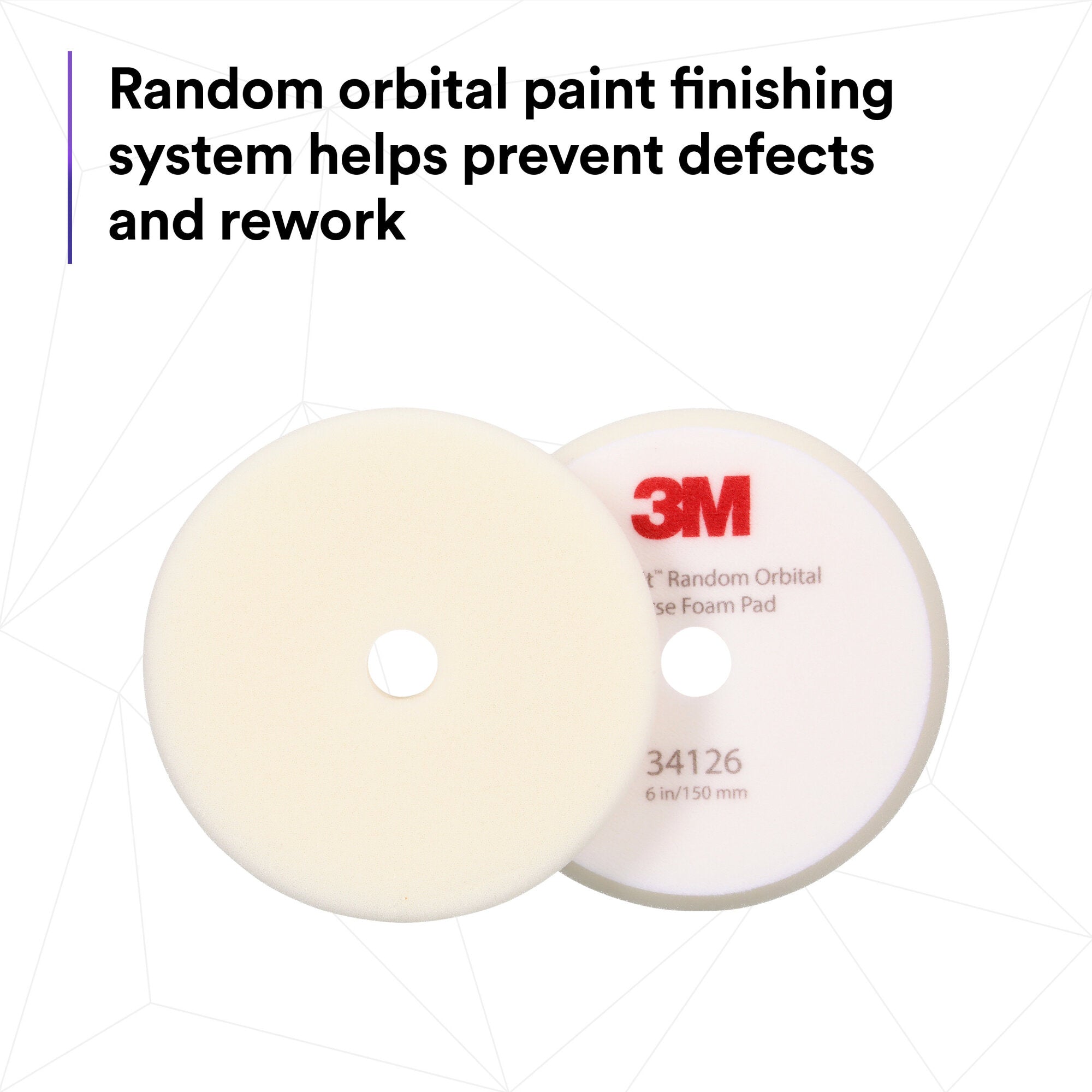 Achieve the best possible finish on a variety of paints and clear coats with the help of the 3M Perfect-It Random Orbital Foam Compounding Pad. Engineered to work with the 3M Perfect-It Random Orbital Polishing System, it delivers the cut you want without creating haze, swirl marks, or holograms.3M™ Perfect-It™ Random Orbital Foam Compounding Pad is designed for paint finishing and detailing professionals of all skill levels who want to achieve a high-quality finish without wool pad lint. When used with the 3M™ Perfect-It™ Random Orbital Polisher and 3M™ Perfect-It™ Random Orbital Compound, they can deliver a high-gloss finish with less sling than a rotary tool.