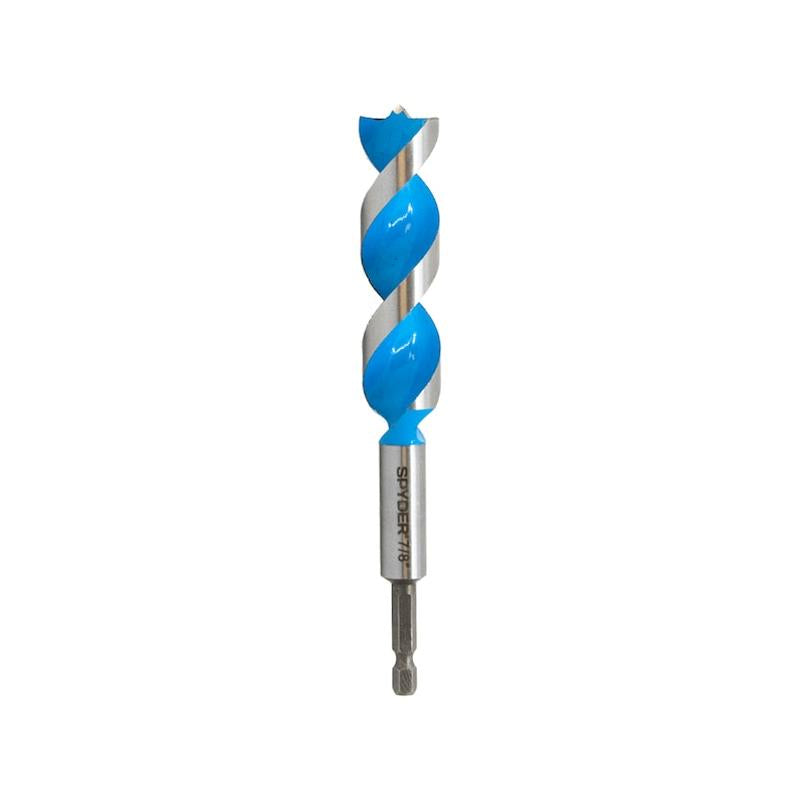 The Spyder Stinger Power Bit bores up to 40x faster and with 50% less torque than conventional woodboring bits, making it ideal for fast, clean, precise applications using both low- and high-torque cordless drills. Featuring Stinger's patent pending non-clogging, auto-feed tip technology, the Power Bit won't wander, allowing for no-thrust drilling. Power Bit holes are extremely clean and burr-free, making them excellent for precise applications in hardwood, drilling through holes in laminated wood materials, and for stud drilling applications where wire will be pulled. The Spyder Power Bit makes clean holes like a Forstner bit while its auger-like flutes allow deep hole drilling. Not for use in wood with nails, screws, staples or other foreign objects.