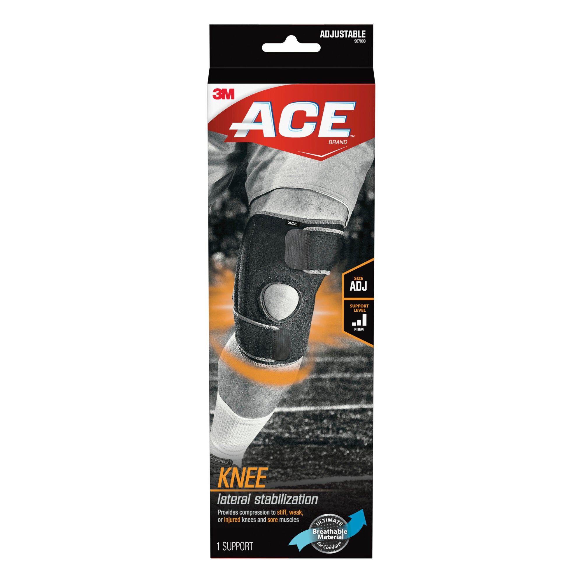 ACE Brand Knee Support w Stabilzers Adjustable 907009Whether you're training for your first marathon, or you've spiked your cycling mileage too quickly, when your knees have something to say, they aren't shy about saying it. Keep doing what you love with the help of the ACE Adjustable Knee Support with Side Stabilizers. Designed to bring you customizable comfort, this knee stabilizer adjusts at three points and features side stabilizers. Wrap your knee in the supportive comfort of the ACE Adjustable Knee Support with Side Stabilizers and play on alongside your teammates.