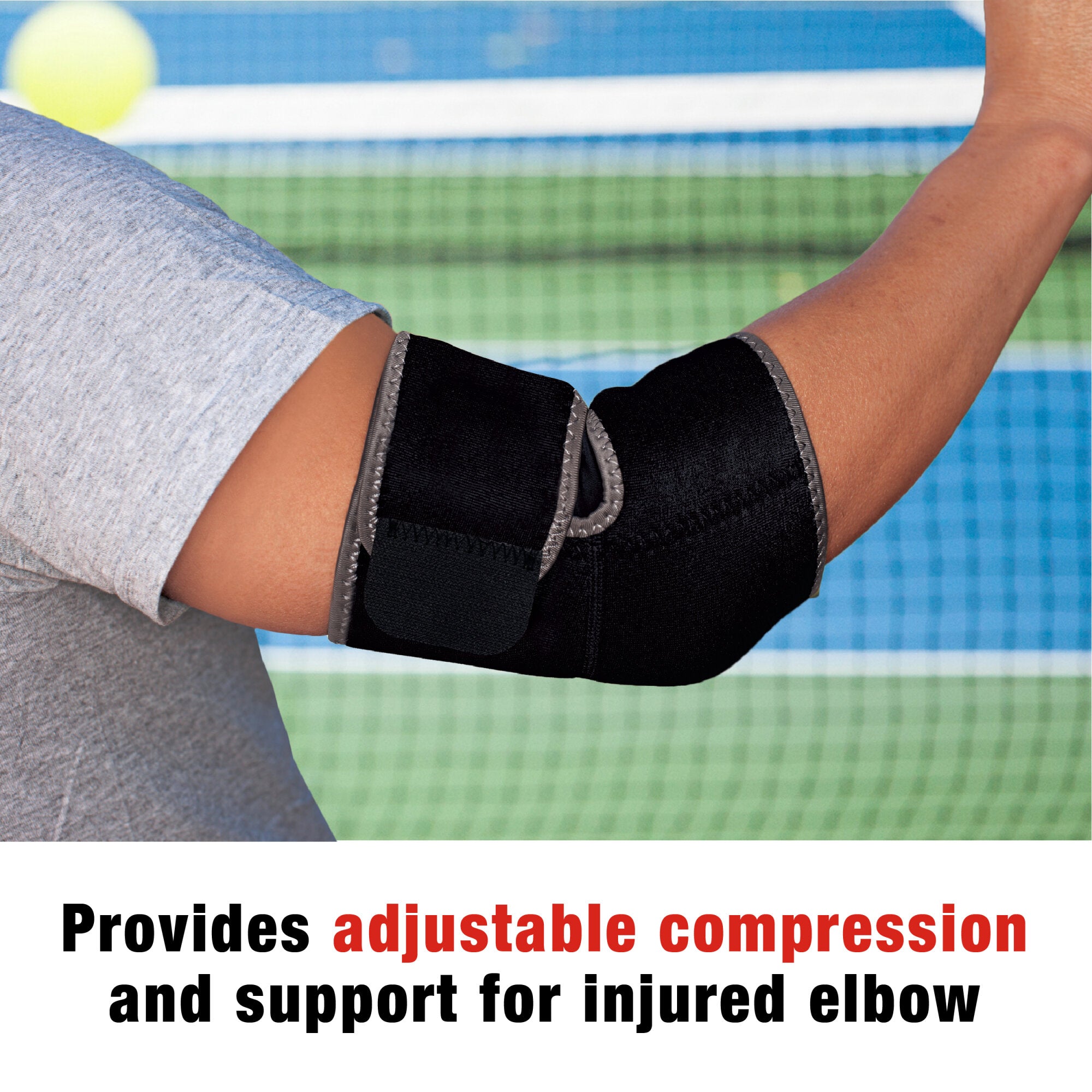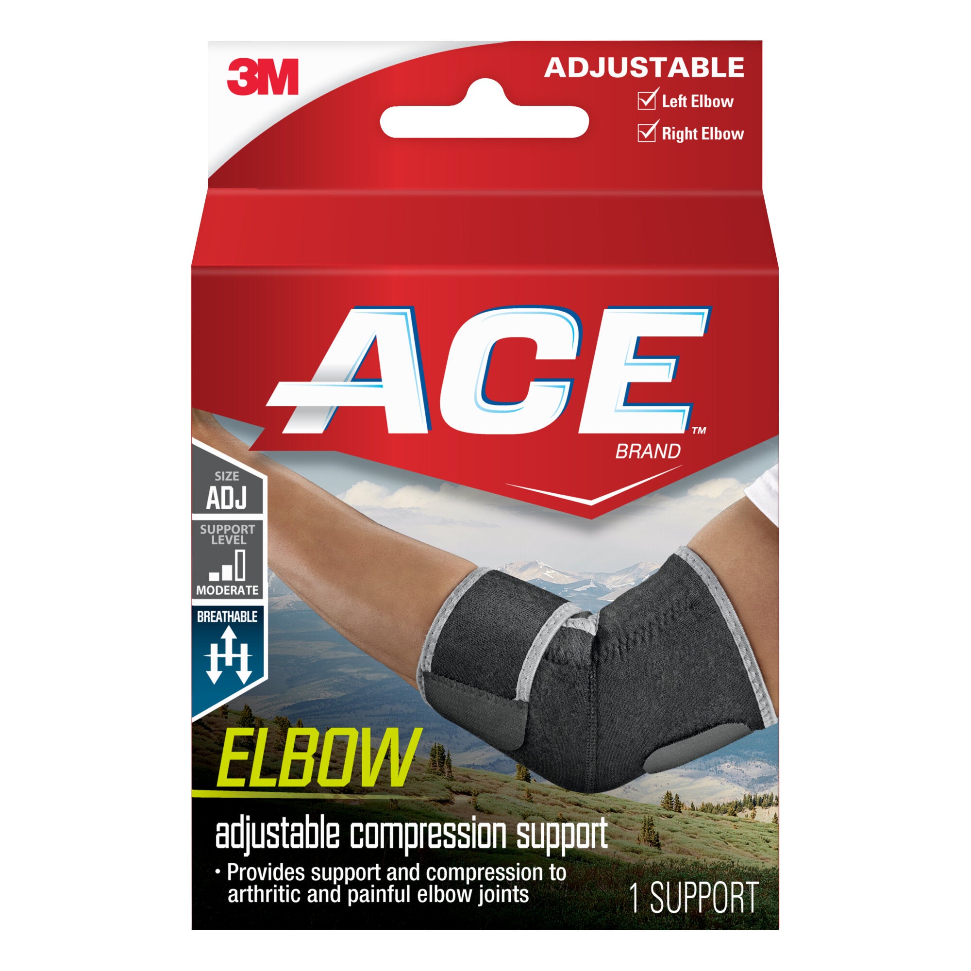 ACE™ Elbow Support 207249, One Size AdjustableThe ACE™ Adjustable Elbow Support delivers reliable stability so you can keep up with your training regimen. Whether you hit the batting cages daily with your son, or you have a weekly tennis meet up with your best friend, our ACE™ Adjustable Elbow Support hugs your arm for comfortable compression. Adjustable features offer the perfect fit, and breathable materials allow air to circulate and help keep skin dry. You're a person of your word–so keep those dates with the help of the ACE™ Adjustable Elbow Support.