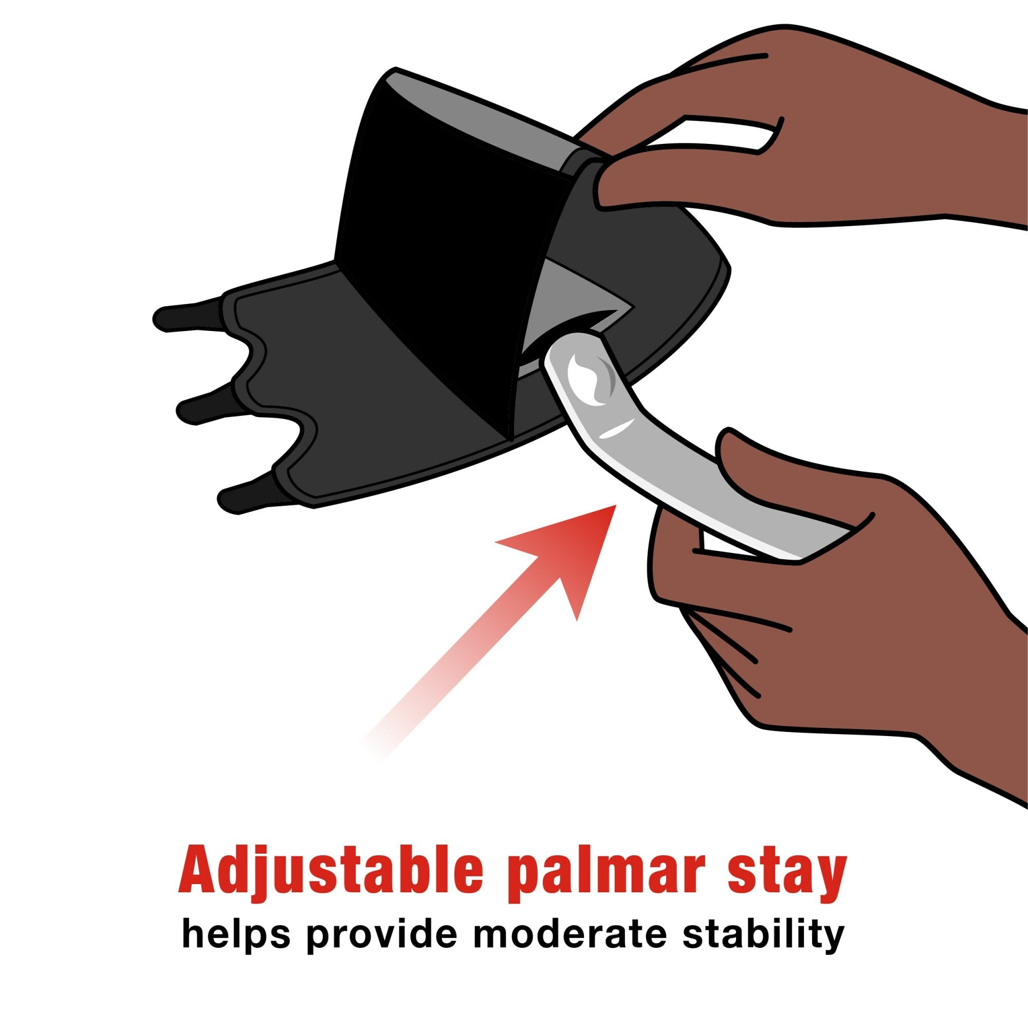 - Provides moderate-stabilizing support to sore, weak and injured wrists