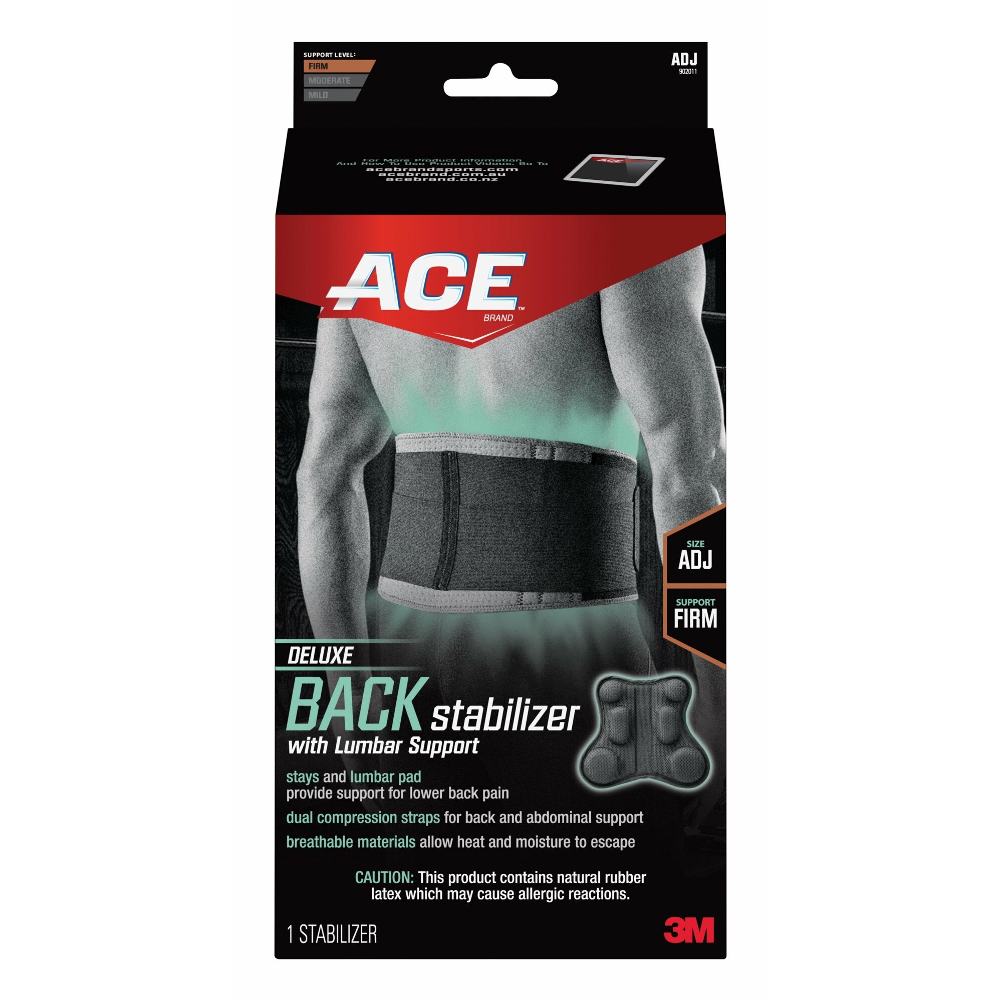 The ACE Deluxe Back Stabilizer gives you the support you need to make it comfortably through your day. A dual-strap system easily adjusts for a snug, comfortable fit, while rigid stays and a lumbar pad offer maximum lower back as well as abdominal support. This firm-stabilizing brace features perforated neoprene that releases excess heat to help keep you cool and your skin dry. Keep up with your day-to-day responsibilities and recreation with the ACE Deluxe Back Stabilizer.The ACE™ Deluxe Back Stabilizer gives you the support you need to make it comfortably through your day. A dual-strap system easily adjusts for a snug, comfortable fit, while rigid stays and a lumbar pad offer maximum lower back as well as abdominal support. This firm-stabilizing brace features perforated neoprene that releases excess heat to help keep you cool and your skin dry. Keep up with your day-to-day responsibilities and recreation with the ACE™ Deluxe Back Stabilizer.