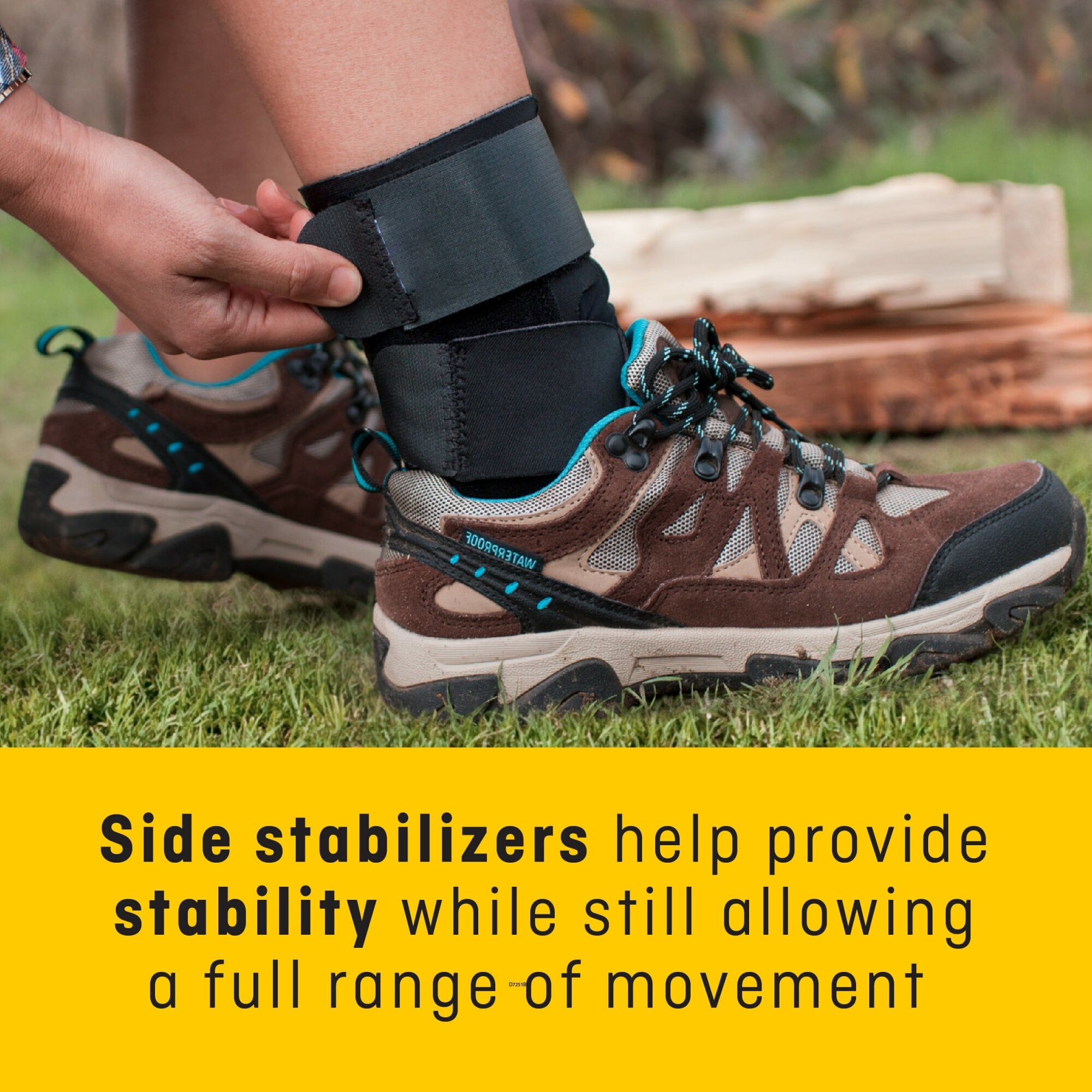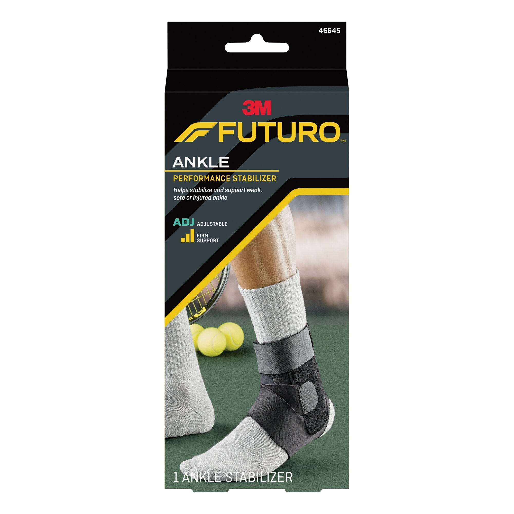 Designed to help provide strength, protection and rigid support to stiff, weak or injured ankles. Reinforced side stays help limit lateral motion.Sometimes, all you need to stay in the game is a bit of support. Built tough with firm side stabilizers, the FUTURO™ Performance Ankle Stabilizer delivers the support and stability you need to keep your competitive edge on the court and at the gym. The adjustable straps let you achieve a custom fit, and breathable materials allow airflow. Rely on the FUTURO™ Performance Ankle Stabilizer to deliver support, while doing what you love.