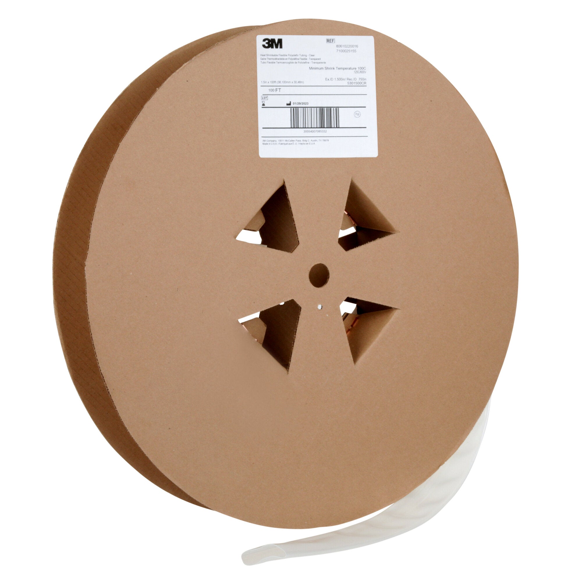 3M Heat Shrink Thin-Wall Tubing FP-301-1.5-Clear-100', 100 ft Lengthper spool