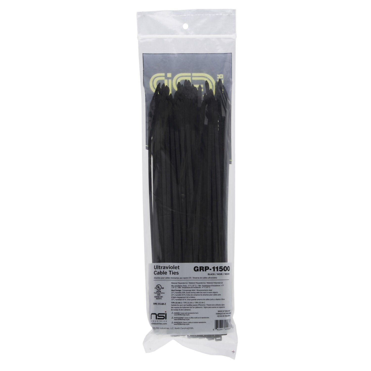 NSI GRP-11500 11”, Black General Purpose 50lb Cable Ties, 100 Pack