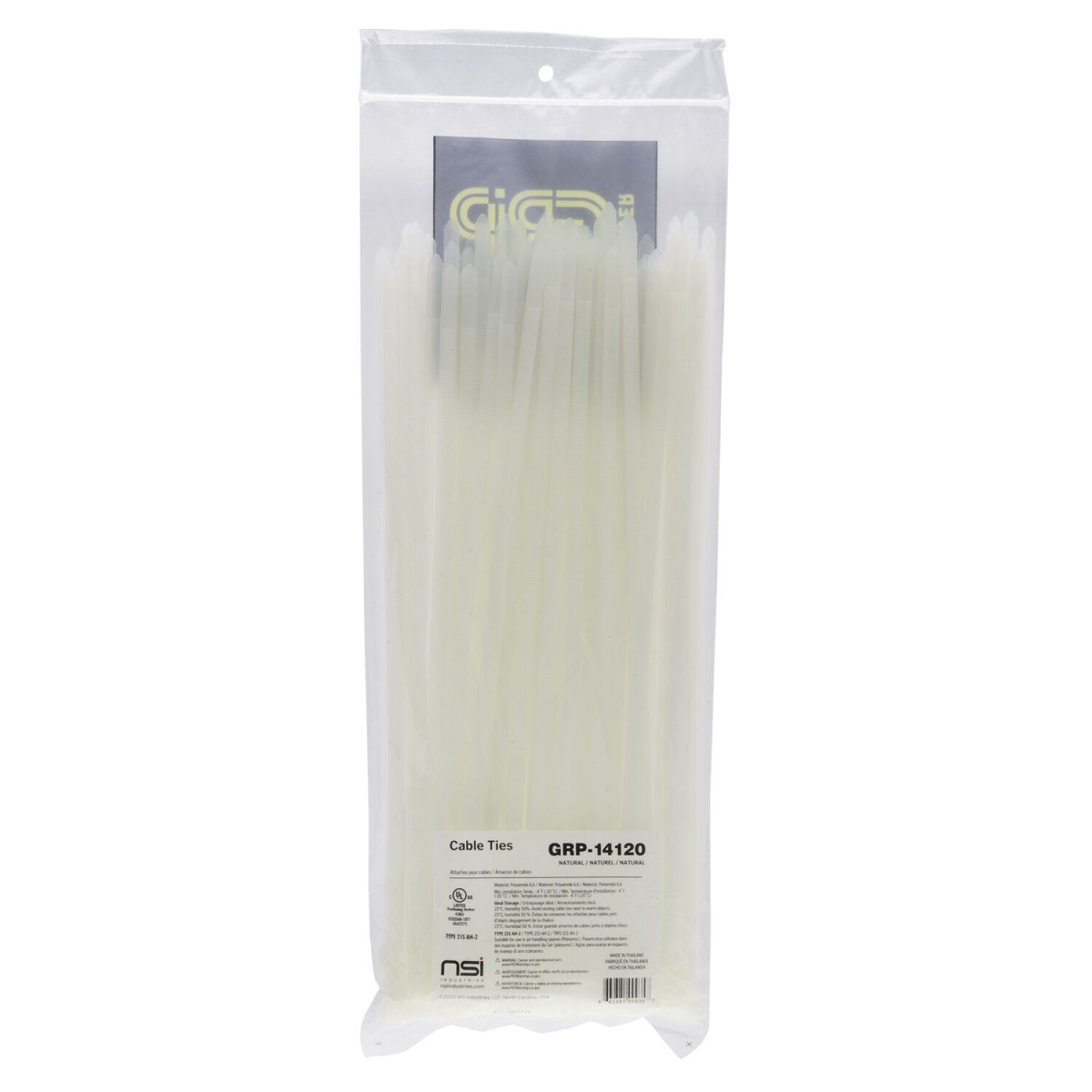 NSI GRP-14120 14 Inch, Natural Heavy-Duty 120lb Cable Ties, 100 Pack